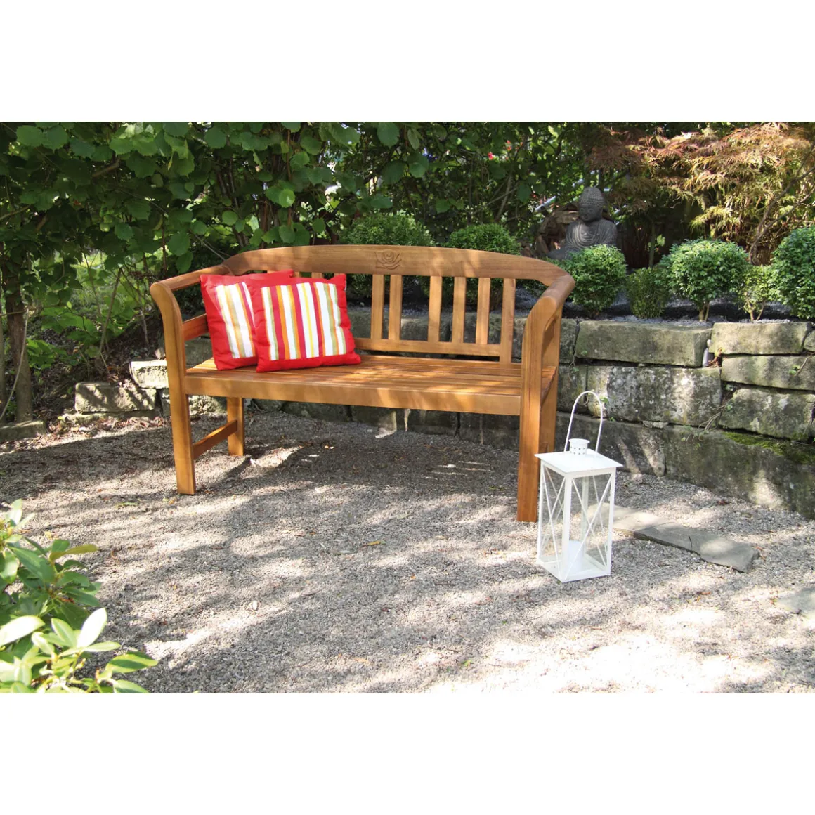 Die acamp Gartenbank Batam 2-Sitzer ist eine stilvolle Ergänzung für jeden Außenbereich. Mit ihrem teakfarbenen Holz und der robusten Akazienholz-Konstruktion bietet sie nicht nur eine bequeme Sitzgelegenheit, sondern auch ein ansprechendes Design.