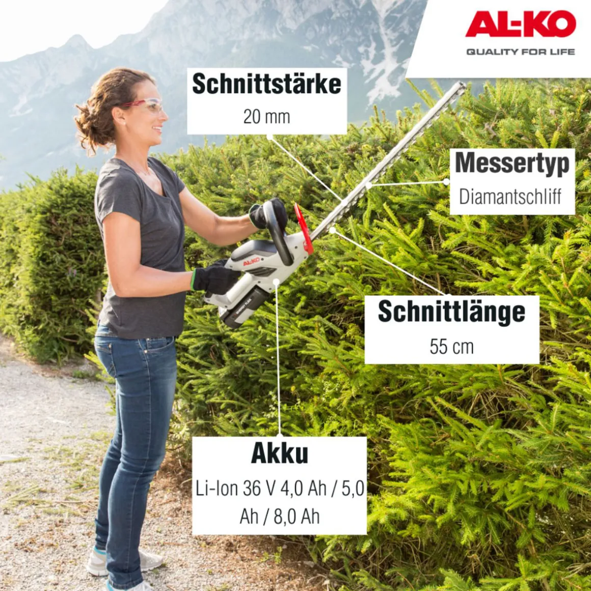 Produktdetails der AL-KO Akku-Heckenschere 36 V HT 4055