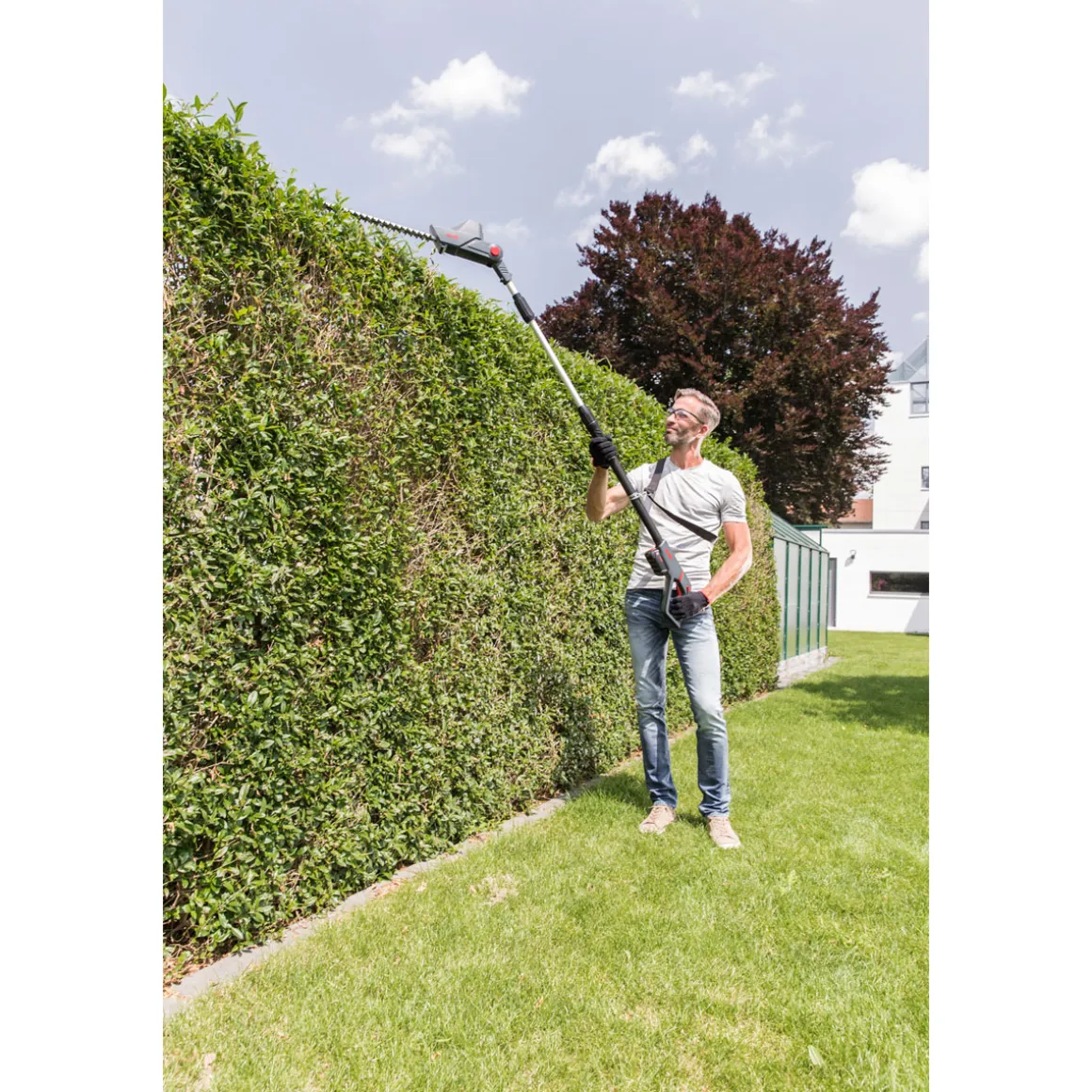 Die AL-KO Akku-Hochheckenschere ist eine zuverlässige Wahl für alle Gartenbesitzer, die Wert auf kabelloses Arbeiten legen und dabei nicht auf Leistung verzichten wollen. Mit dem Teleskopierbaren Stiel lässt sich die Heckenschere bequem an jede Arbeitshöhe anpassen und das geringe Gewicht sorgt für eine angenehme Handhabung während des gesamten Arbeitsvorgangs.