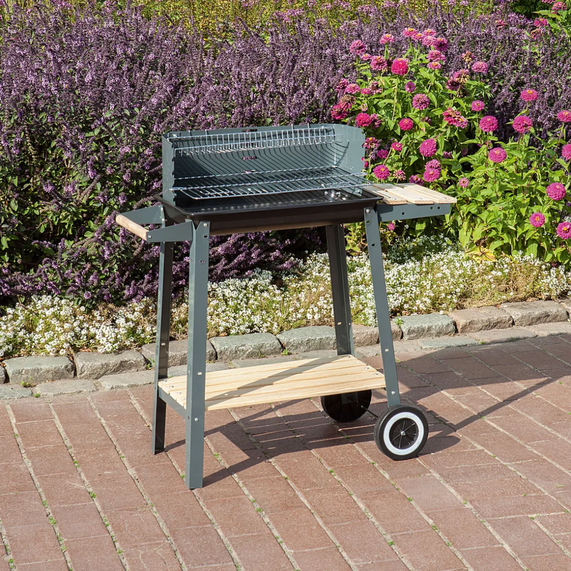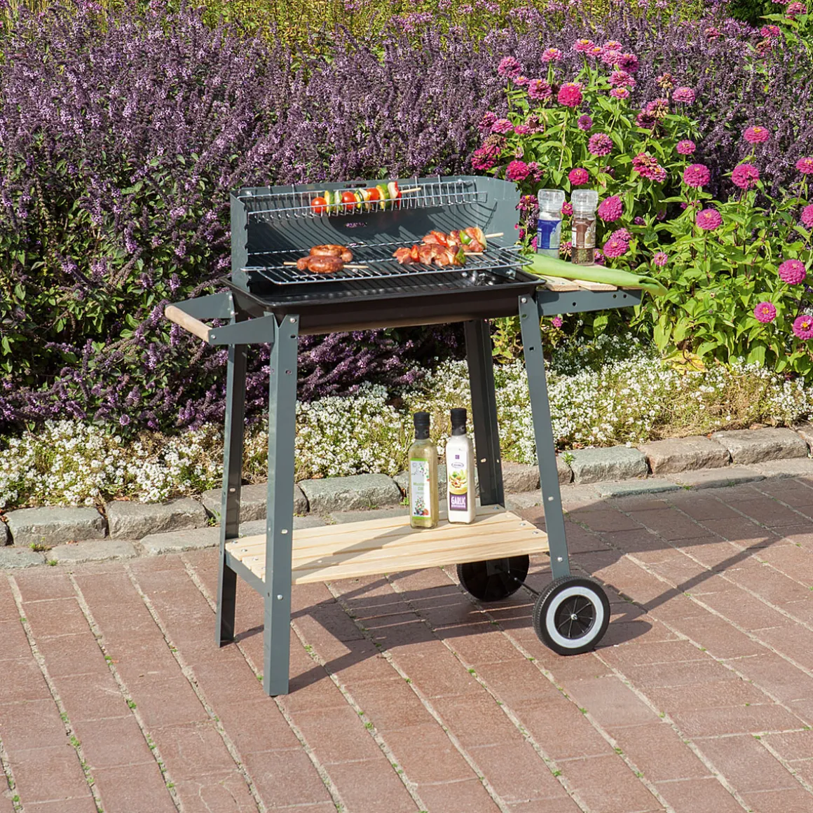 Der Holzkohlegrill ist ideal für alle Kunden geeignet, die auf der Suche nach einem einfachen und dennoch funktionalen Modell sind. Dank seiner Rollbarkeit und praktischen Ablagefläche eignet er sich besonders gut für den Einsatz auf Terrassen oder Balkonen.