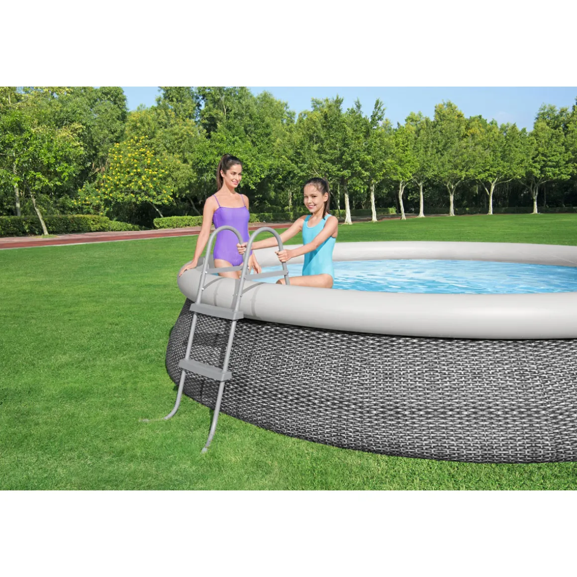 Mit der Bestway Poolleiter Flowclear wird der Einstieg in den Pool zum Kinderspiel. Die robuste Konstruktion aus Stahl mit Korrosionsschutz-Beschichtung und die stabilen Kunststoffstufen machen die Leiter besonders langlebig.