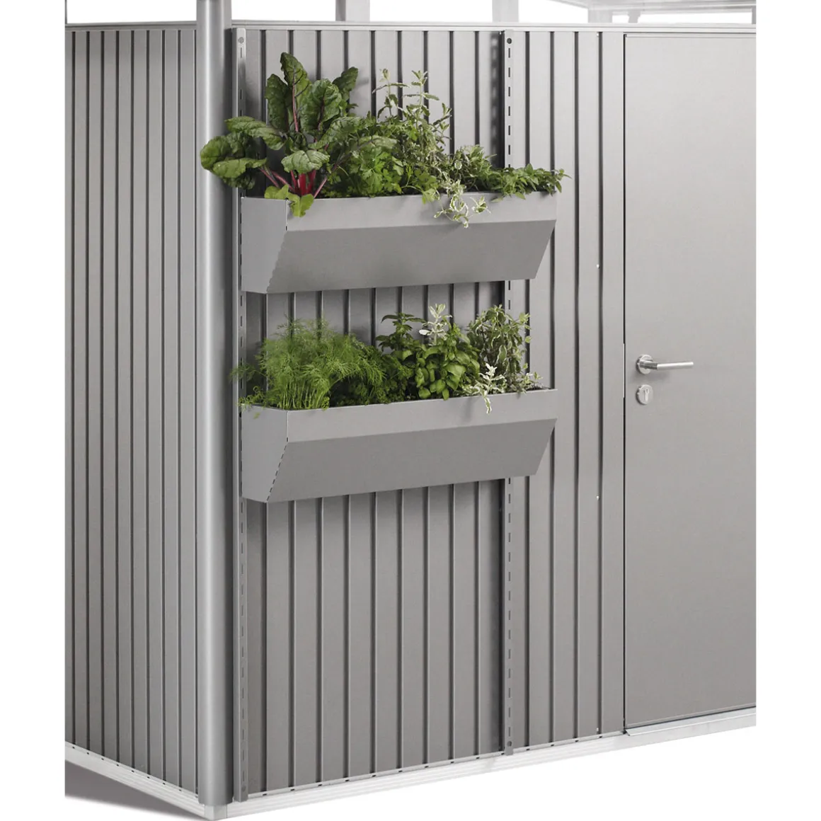Bringen Sie Farbe in Ihren Garten und verleihen Sie Ihrem Biohort Gerätehaus mit dem FloraBoard Blumenkasten eine persönliche Note. Der Blumenkasten ist aus feuerverzinktem, polyamid-einbrennlackiertem Stahlblech gefertigt und somit äußerst witterungs- und UV-beständig. Die rechteckige Form des Kastens bietet Platz für bis zu 13 Liter Pflanzenerde, die Kunststoffeinsätze erleichtern das Bepflanzen und sorgen für eine optimale Drainage.