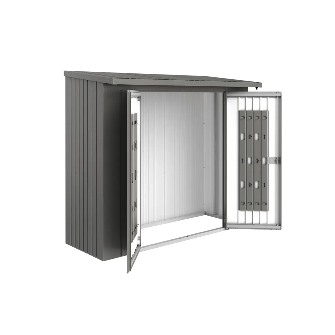 Mit dem Biohort Biohort Türpaket zu WoodStock Größe 230 quarzgrau – metallic erhalten Sie eine hochwertige Doppeltür aus feuerverzinktem und polyamid-einbrennlackiertem Stahlblech. Die Tür ist passend für das BIOHORT-Kaminholzlager WoodStock 230 und bietet Ihnen durch das Drehgriff-Zylinderschloss sowie das Ordnungssystem auf den Türinnenseiten maximale Sicherheit und Ordnung.
