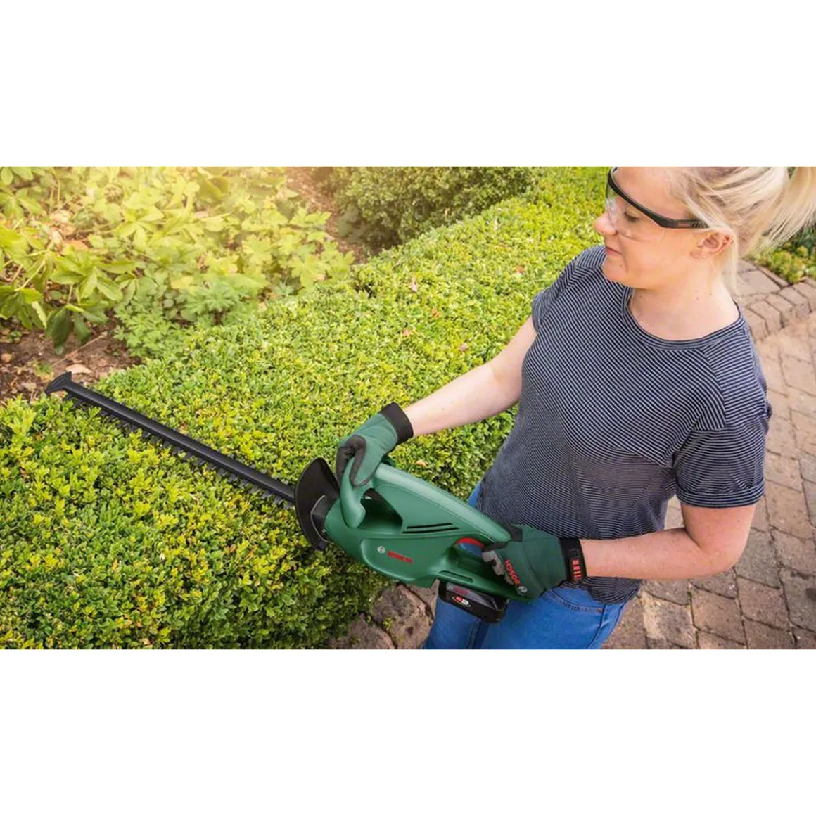 Mit der Bosch Akku-Heckenschere EasyHedgeCut 18-45 ohne Akku wird das Schneiden Ihrer Hecke zum Kinderspiel. Der bürstenlose Motor sorgt dabei nicht nur für eine längere Lebensdauer des Geräts, sondern auch dafür, dass Sie Ihre Arbeit unterbrechungsfrei erledigen können. Dank des Anti Blockier Systems haben Sie außerdem stets volle Kontrolle über das Gerät. Bestellen Sie jetzt die Bosch Heckenschere im Online Shop und erleben Sie selbst, wie einfach es sein kann, Ihre Hecke zu schneiden!