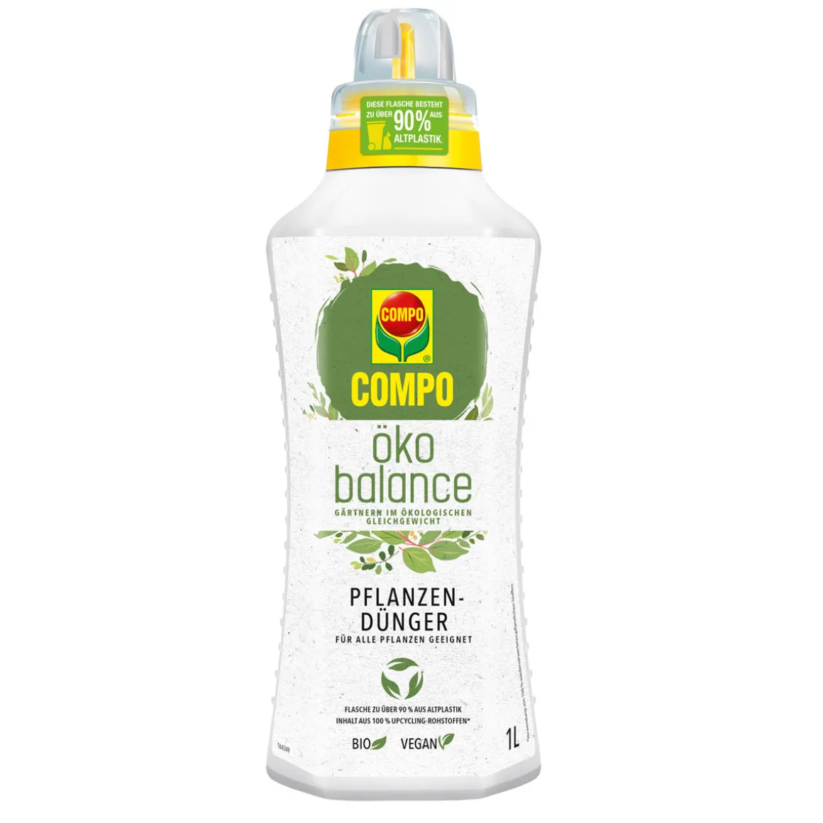 Mit dem Compo Pflanzendünger Balance öko gönnen Sie Ihren Pflanzen eine natürliche und nachhaltige Nährstoffversorgung. Der Flüssigdünger besteht aus rein pflanzlichen Stoffen und ist vegan. Die Verpackungsflasche besteht zu 90% aus Altplastik, was die Umweltbelastung reduziert.