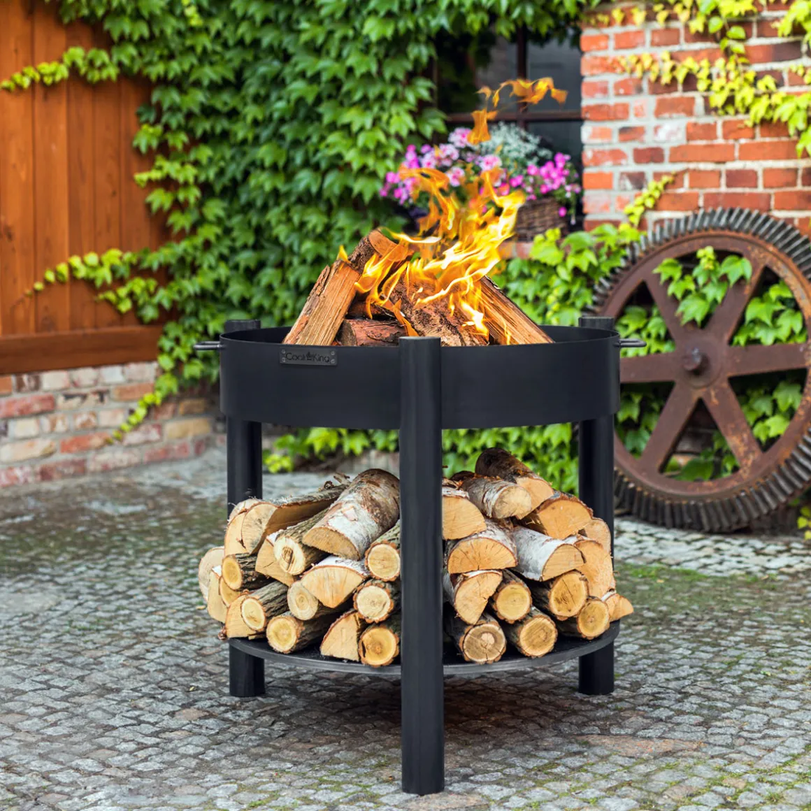 CookKing Feuerschale Montana 80 hoch inkl. Holzlager 88x80cm Schwarz