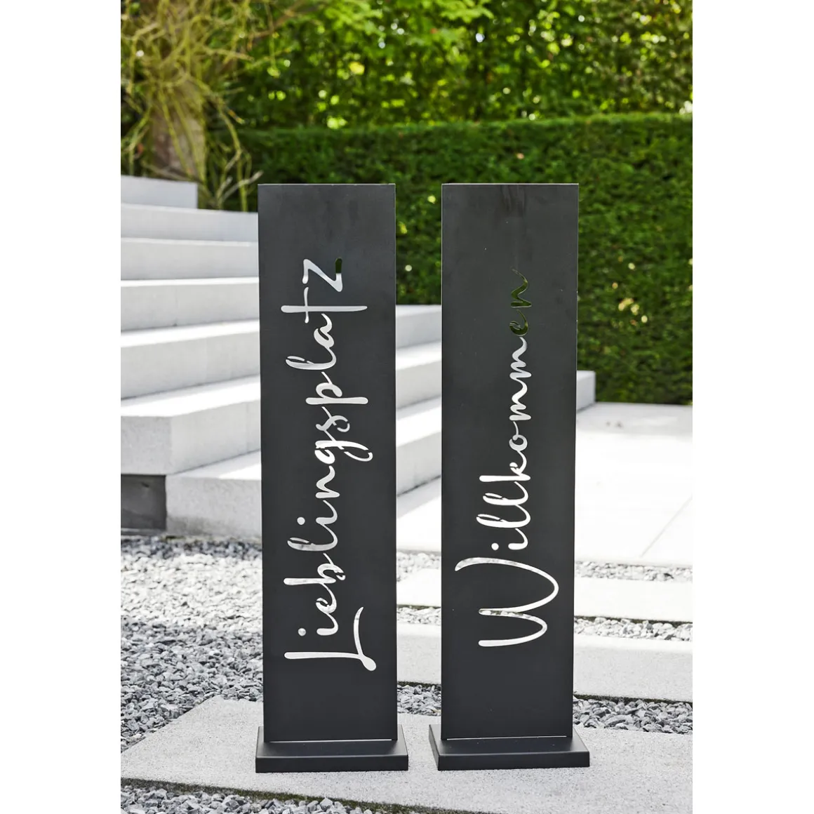 Verleihen Sie Ihrem Garten mit dem Cartello Aufsteller eine besondere Note. Das schwarze Metall und das schlichte Design machen ihn zu einem echten Hingucker.