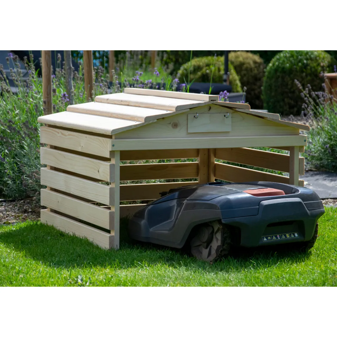 - Die Garage besteht aus robustem Fichtenholz aus der EU für langlebigen Schutz Ihres Mähroboters