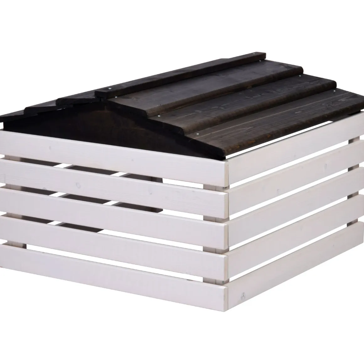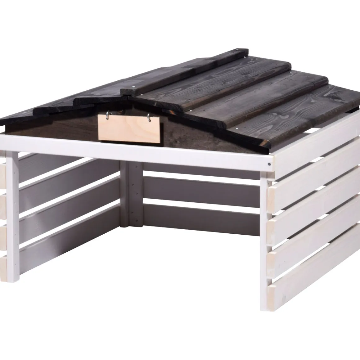 - Das praktische Satteldach schützt vor Regen und Schnee und sieht dabei schick aus.