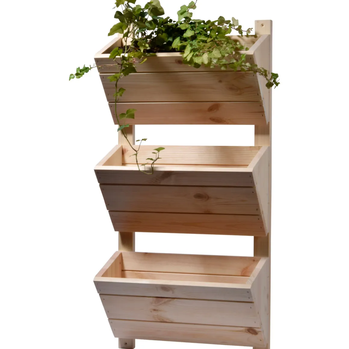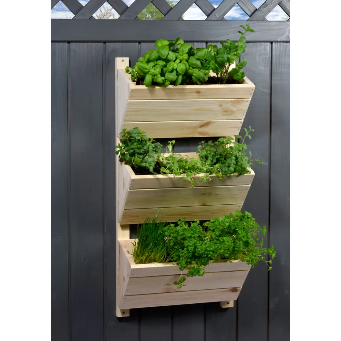Kompakt, vielseitig einsetzbar und dekorativ: Dieses Wandbeet ist ein echter Alleskönner. Das 3-stufige Vertikalbeet kann in der Küche, auf dem Balkon oder der Terrasse abgelegt werden. In den drei separaten Blumenkästen können Kräuter oder Blumen angepflanzt werden. Optisch begeistert das Stufenbeet durch den natürlichen Holzlook und die reduzierte Formensprache. Da es in Handarbeit gefertigt wurde, handelt es sich um ein echtes Unikat. Das Wandbeet hat die Maße BxHxT 38x79x17,5 cm.