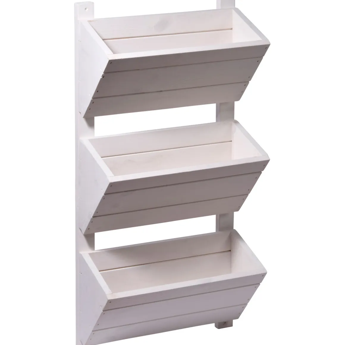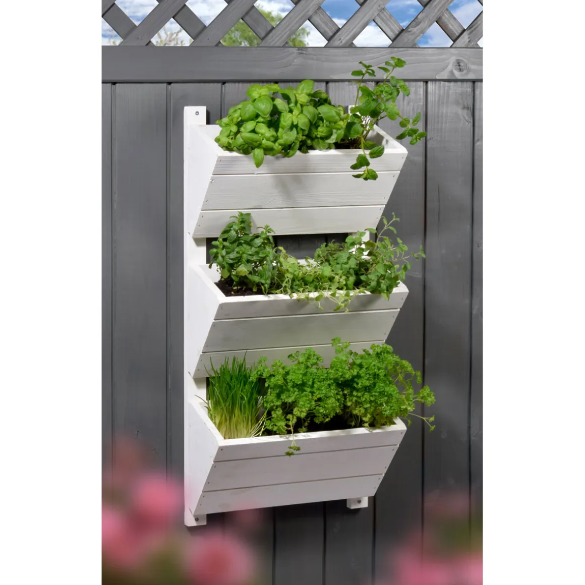 Kompakt, vielseitig einsetzbar und dekorativ: Dieses Wandbeet ist ein echter Alleskönner. Das 3-stufige Vertikalbeet kann in der Küche, auf dem Balkon oder der Terrasse abgelegt werden. In den drei separaten Blumenkästen können Kräuter oder Blumen angepflanzt werden. Optisch begeistert das Stufenbeet durch den natürlichen Holzlook und die reduzierte Formensprache. Da es in Handarbeit gefertigt wurde, handelt es sich um ein echtes Unikat. Das Wandbeet hat die Maße BxHxT 38x79x17,5 cm.