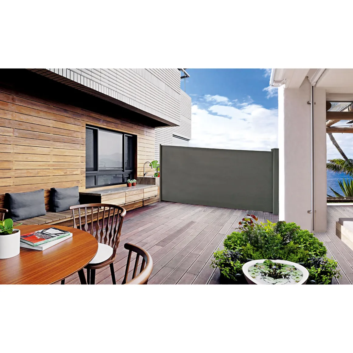 Genießen Sie Ihre Privatsphäre im Garten mit dem Durabil Flexiblen Sichtschutz in Anthrazit.