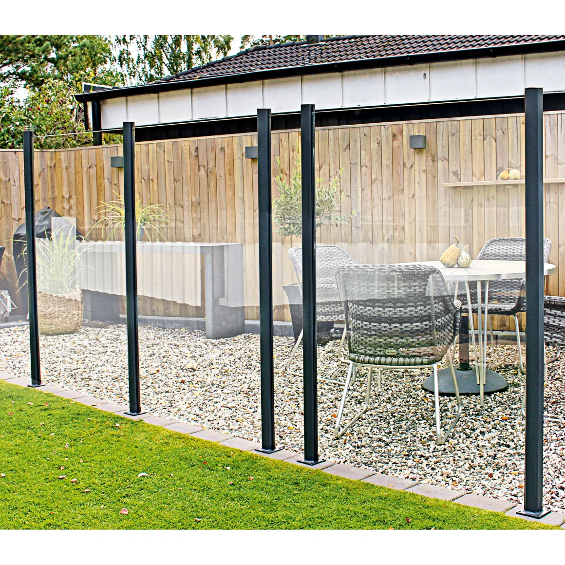 Mit dem Durabil Glas-Windschutz schaffen Sie nicht nur einen effektiven Windschutz in Ihrem Garten, sondern setzen auch ein stilvolles Design-Statement. Das transparente Glas und das robuste Aluminium sorgen für eine langlebige Lösung.