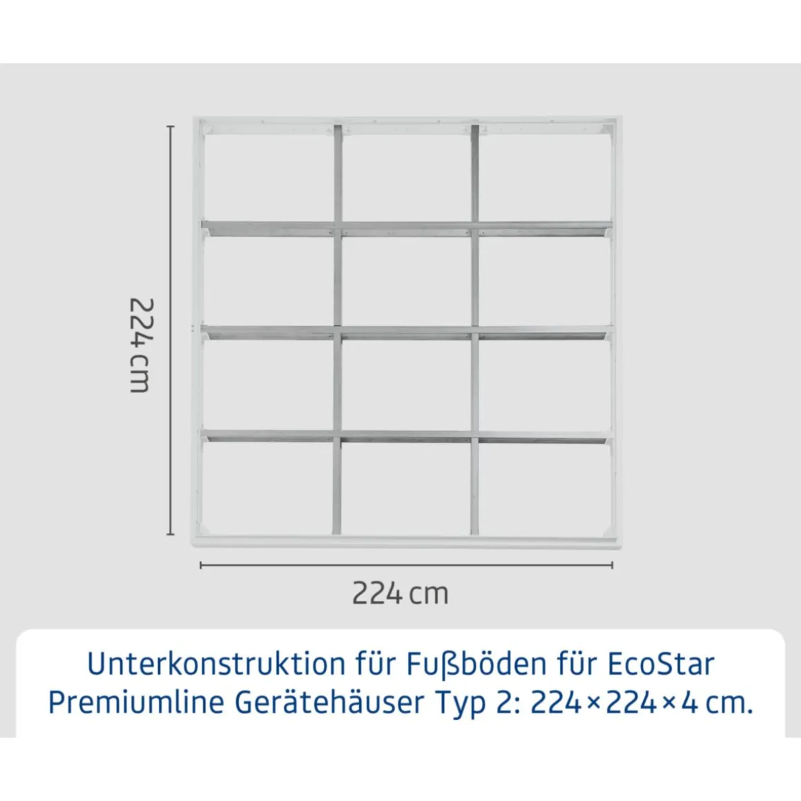Um die optimale Belastbarkeit des EcoStar Riffelblechbodens zu geben, sollten Sie diesen mit der passenden Unterkonstruktion kombinieren. Die Anbringung der Konstruktion ist sehr einfach und gibt eine tragfähige, belastbare Bodenfläche in Ihrem EcoStar Gerätehaus.