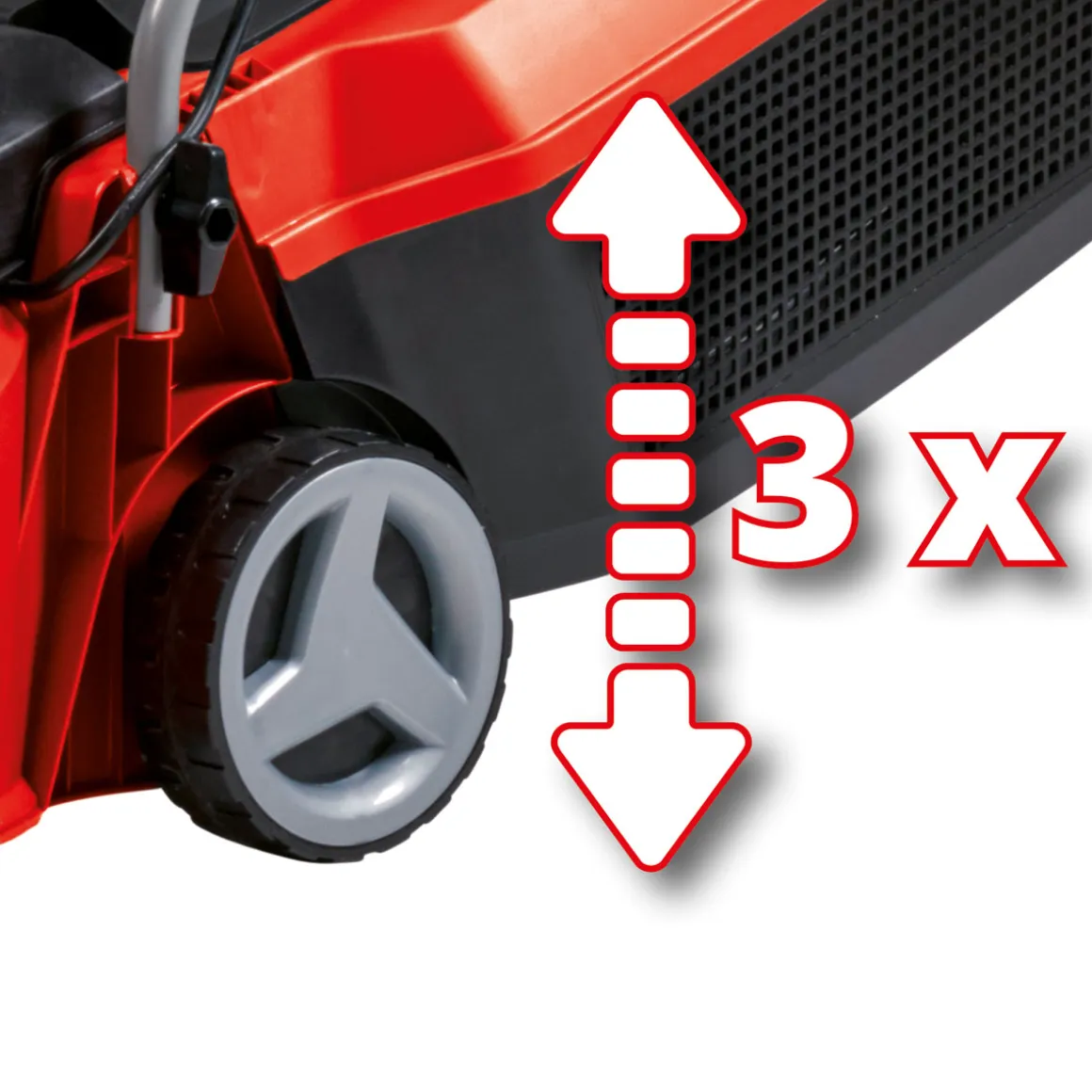 - Schnitthöhe von 30 mm bis 70 mm in drei Stufen verstellbar