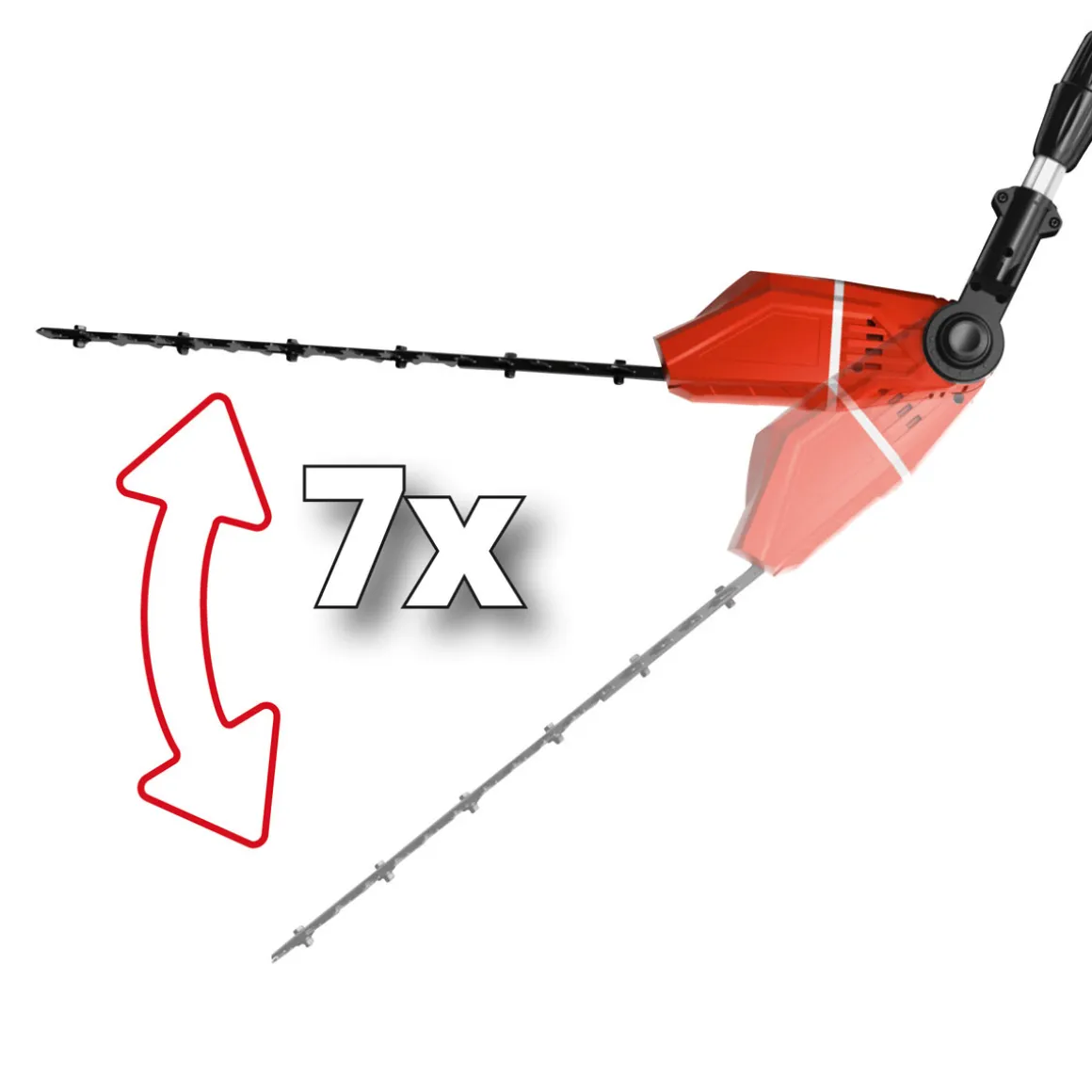 Mit der Einhell Akku-Teleskop-Heckenschere GE-HH 18/45 Li T – Solo wird das Heckenschneiden zum Kinderspiel. Dank des stufenlos ausziehbaren Teleskopstiels und des abwinkelbaren Kopfes erreichen Sie mühelos auch schwer zugängliche Stellen.