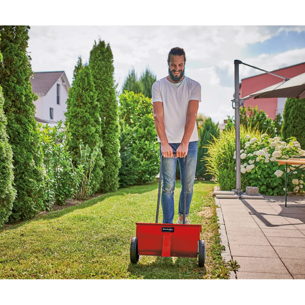 Der Einhell Streuwagen ist ideal für alle Hobbygärtner und Hausbesitzer geeignet, die eine einfache Möglichkeit suchen, um Dünger oder Saatgut gleichmäßig auf ihrem Rasen oder im Garten zu verteilen.