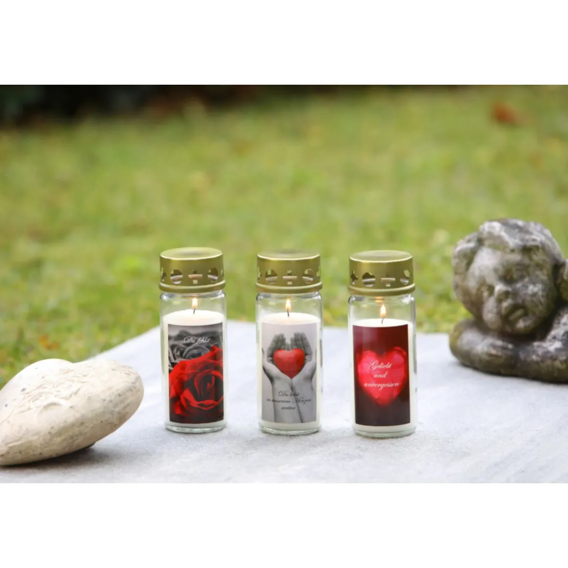 Flower Power Grabkerze GLORIA klein 6,3 x 16,5 cm Glas