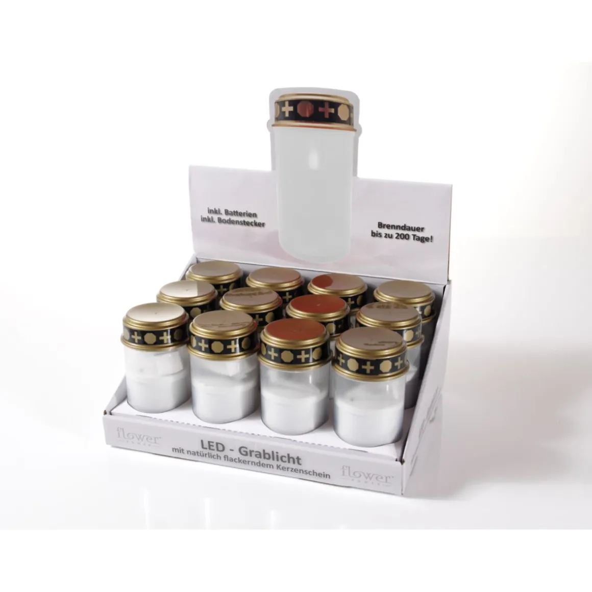 | Lieferumfang: | 1 LED Grabkerze, 1 Dorn, 2x Batterien Baby C |