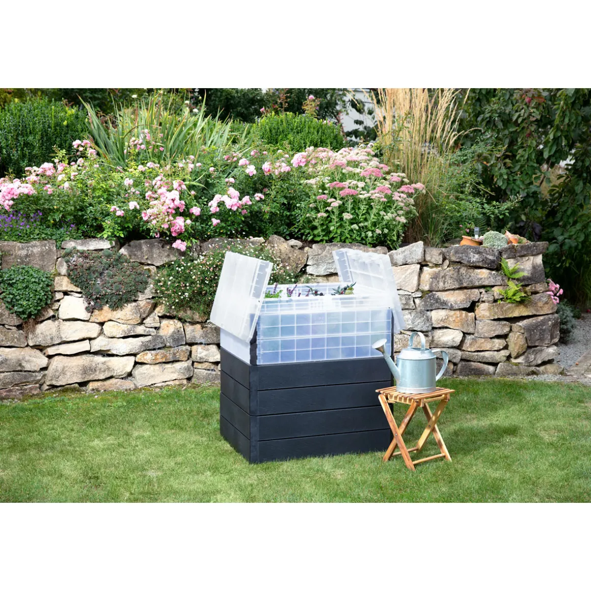 - Ausstattung: Bewässerungssystem, Frühbeetaufsatz, Wachstumsmodul und Deckel inklusive