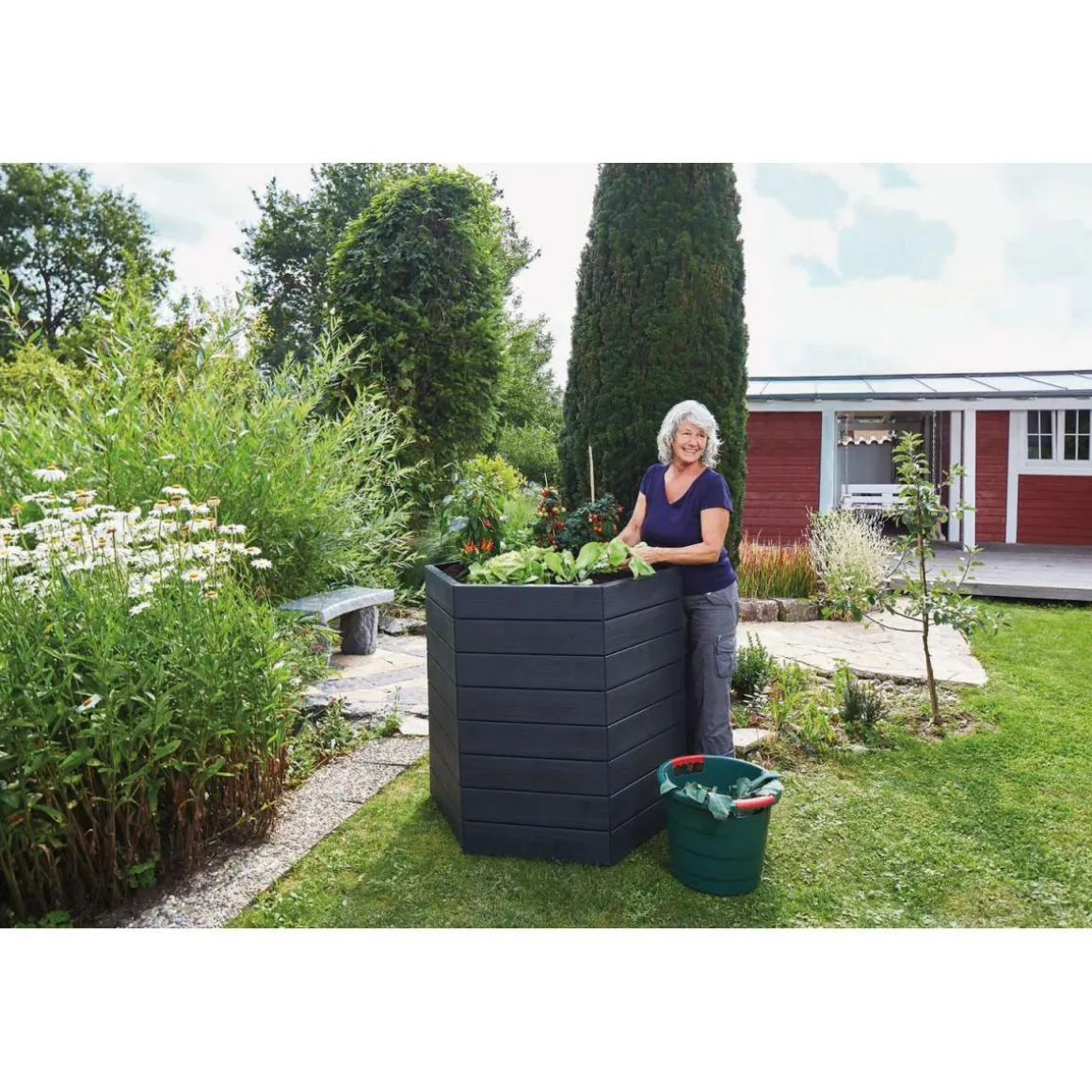 Mit dem Garantia Hochbeet-System Ergo 6 Paneele wird das Gärtnern zum Kinderspiel. Das sechseckige Beet bietet nicht nur Platz für eine Vielzahl von Pflanzen, sondern ermöglicht auch ergonomisches Arbeiten in bequemer Höhe. Die dekorative Oberfläche mit Holzstruktur fügt sich harmonisch in jeden Garten ein.