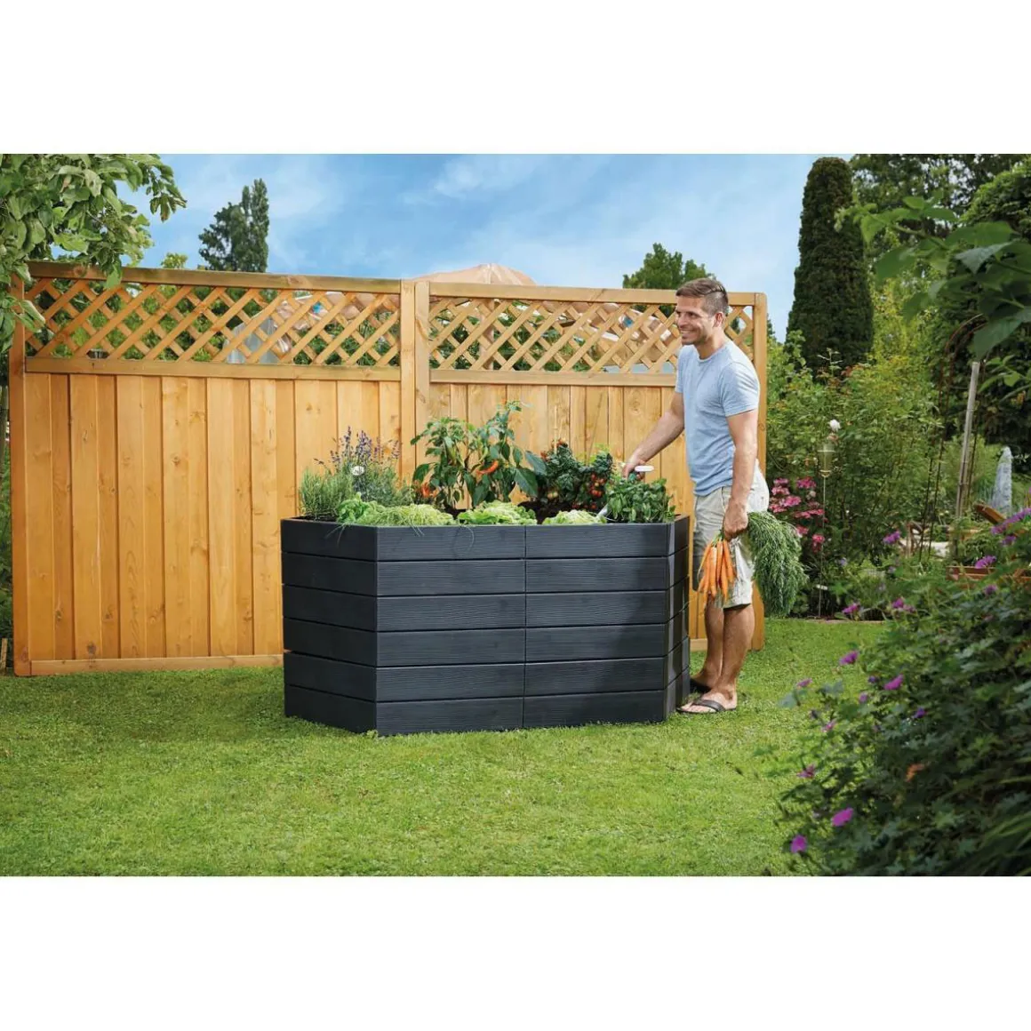Mit dem Garantia Hochbeet-Verlängerungsset Ergo 2 Paneele erweitern Sie Ihr bestehendes Beet um weitere zwei Panelle. Die flexible Erweiterungsmöglichkeit ermöglicht Ihnen eine individuelle Anpassung an Ihre Bedürfnisse. Durch die ergonomische Arbeitshöhe schonen Sie Ihren Rücken und können länger im Garten arbeiten. Das Material aus Recycling-Kunststoff ist witterungsbeständig und UV-beständig, sodass es lange hält. Die dekorative Holzstruktur verleiht Ihrem Garten eine ansprechende Optik. Nutzen Sie das Set auch als Komposter und betreiben Sie nachhaltige Gartenarbeit.