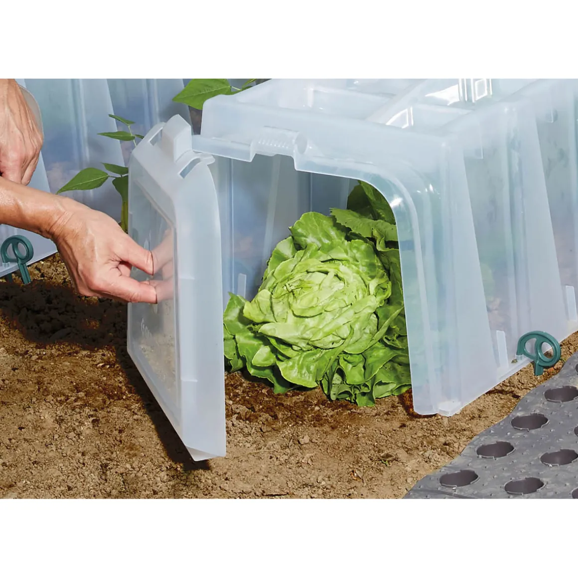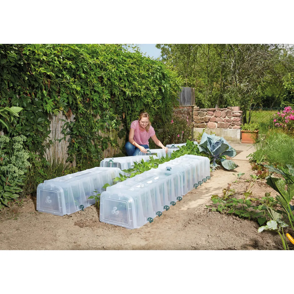 Garantia SUNNY Pflanztunnel 5er-Komplettset – Das robuste Pflanztunnelsystem mit Komfortbelüftung und Bewässerungsfunktion! Die GARANTIA Sunny Pflanzhilfen sorgen für die ideale Aufzucht von Pflanzen und Gemüse. Ein feuchtwarmes Mikroklima im Inneren fördert das Wachstum der Pflanzen. Der Aufbau des Sunny Pflanztunnels geht einfach und schnell – ohne Werkzeug. Durch einfaches Zusammenstecken mehrerer Tunnelelemente kann der Sunny Pflanztunnel individuell an Ihre Gartengröße und Bedürfnisse angepasst werden. Die Elemente werden mit Bodenankern fixiert und mit Endkappen an der Vorder- und Rückseite verschlossen. So entsteht nach kürzester Zeit ein „Mini-Gewächshaus“ für Ihre Pflanzen. GARANTIA Sunny Pflanzhilfen werden aus qualitativ hochwertigem Kunststoff hergestellt und sind somit jahrelang verwendbar. Zudem sind die Pflanztunnel die wirtschaftliche und flexible Alternative zum klassischen Frühbeet oder zum kurzlebigen Folienpflanztunnel. Dank ihrer dickwandigen Konstruktion sind sie äußerst robust – witterungsbeständige Materialien mit hohem UV-Schutz sorgen für eine lange Lebensdauer beim Einsatz im Freien. Durch das transparente, lichtdurchlässige Material erhalten Ihren Pflanzen jedoch das benötigte Sonnenlicht. Ein effizientes Lüftungssystem schafft das ideale Wachstumsklima und sorgt somit für ein beschleunigtes Pflanzenwachstum und für eine frühere Ernte. Zudem werden Ihre Jungpflanzen auch vor äußeren Einwirkungen wie Hagel, Wind und Frost sowie lästigem Ungeziefer und Schädlingen geschützt. Aber auch die Bauweise der Sunny Pflanzhilfen und die unkomplizierte Handhabung überzeugen. So ist die Bewässerung der Pflanzen ohne mühsamen Abbau der Tunnel möglich. In den Bewässerungsmulden sammelt sich Regen- oder Gießwasser, welches tropfenweise eine sanfte Bewässerung der Pflanzen ermöglicht – und dies zu 100% auch bei Geländeneigung und Bodenunebenheiten. Zum Ende der Gartensaison werden die Pflanztunnel einfach abgebaut und können platzsparend aufeinander gestapelt und eingelagert werden. Maße eines Tunnelelementes 105 x 40 x 30 cm (LxBxH) – Qualität Made in Germany.