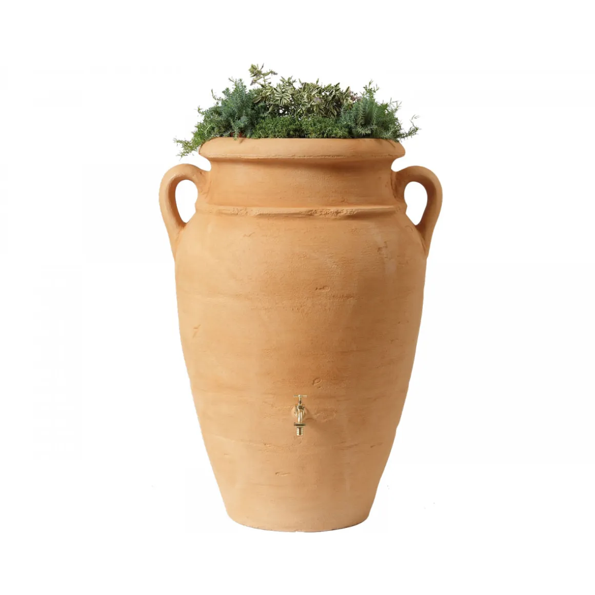 Mit dem Garantia Regenspeicher Amphore Antik 250 L holen Sie sich nicht nur eine praktische Möglichkeit zur Bewässerung in Ihren Garten, sondern auch ein dekoratives Element. Die Terracotta-Amphore-Optik verleiht Ihrem Außenbereich einen mediterranen Flair, während das integrierte Pflanzgefäß zusätzlich Platz für Ihre Lieblingsblumen bietet.