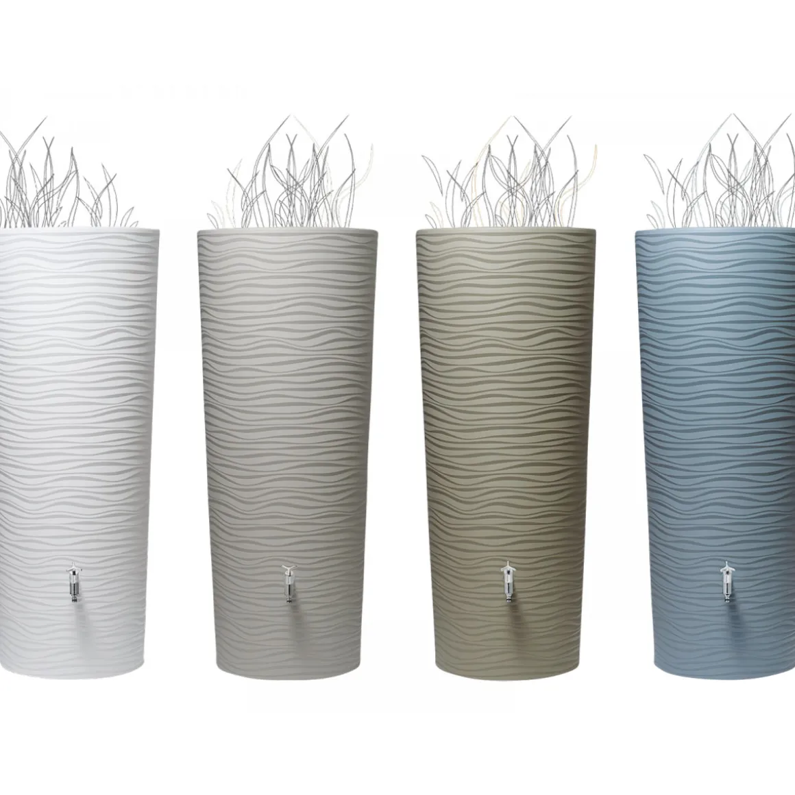 Mit dem Garantia Regenspeicher Natura 2in1 ocean 350 L holen Sie sich nicht nur einen funktionalen, sondern auch einen ästhetisch ansprechenden Helfer in Ihren Garten. Die wellenförmige Oberflächenstruktur erzeugt je nach Lichteinfall außergewöhnliche Farbspiele und die integrierte Pflanzschale ermöglicht eine individuelle Bepflanzung.