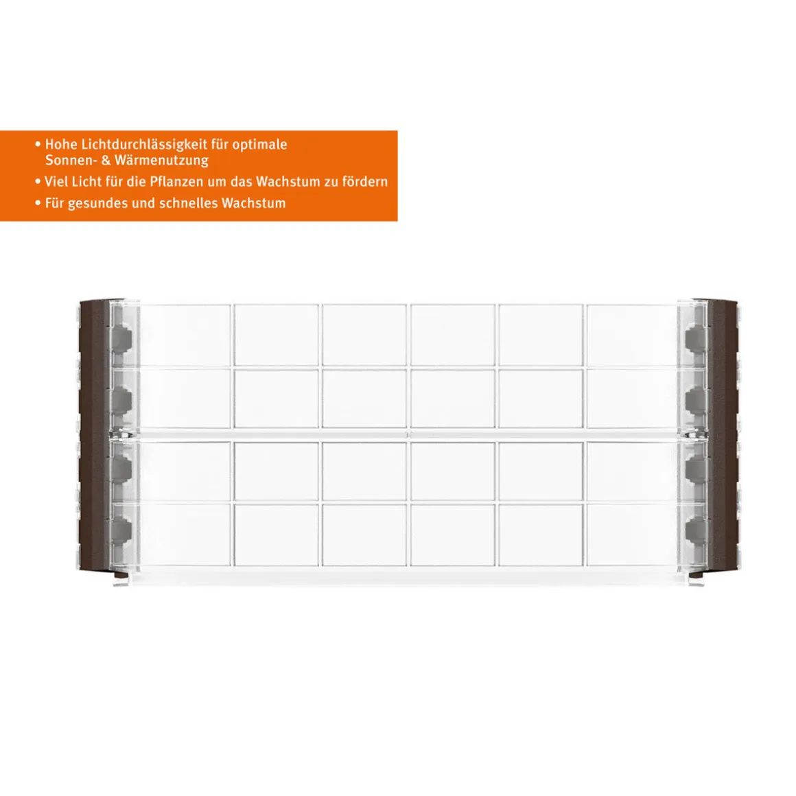 Erleben Sie mit dem Garantia Wachstumsmodul Ergo Quadro eine neue Art des Gärtnerns. Das transparente Modul aus recycelbarem Polypropylen bietet hohe Lichtdurchlässigkeit und schützt Ihre Pflanzen vor Wind und Wetter.