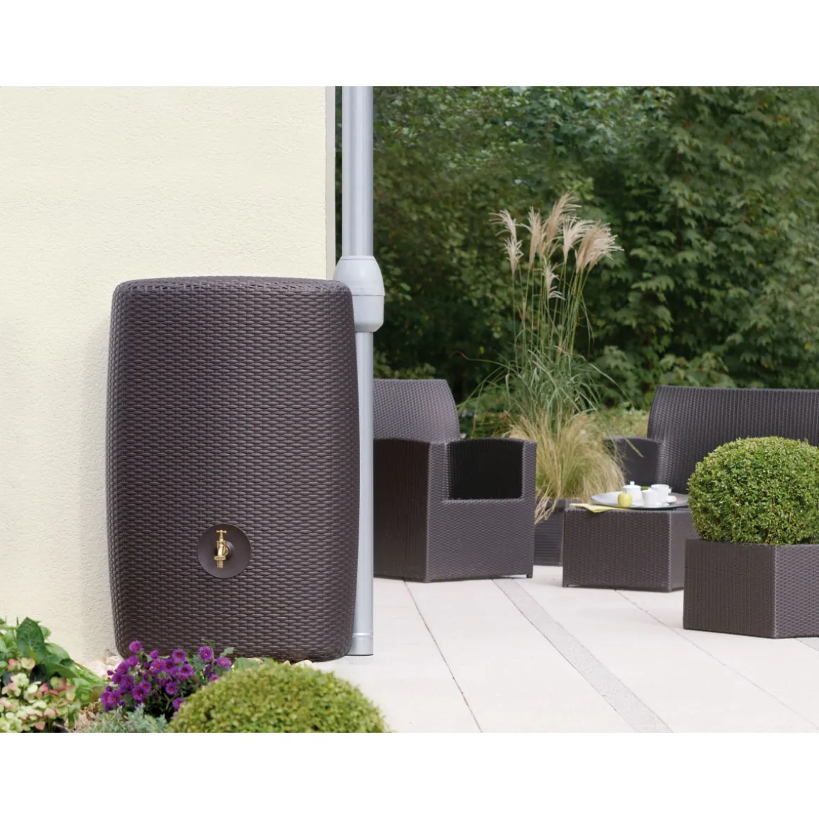 Mit dem Garantia Wandtank Sunda 300 L haben Sie die Möglichkeit, Regenwasser zu sammeln und es für Ihre Bewässerungstechnik im Außenbereich zu nutzen. Der Tank ist aus hochwertigem Kunststoff gefertigt und besticht durch seine attraktive Rattanoptik in Mocca. Mit einem Fassungsvermögen von 300 Litern bietet er genügend Platz, um auch größere Gärten zu bewässern.
