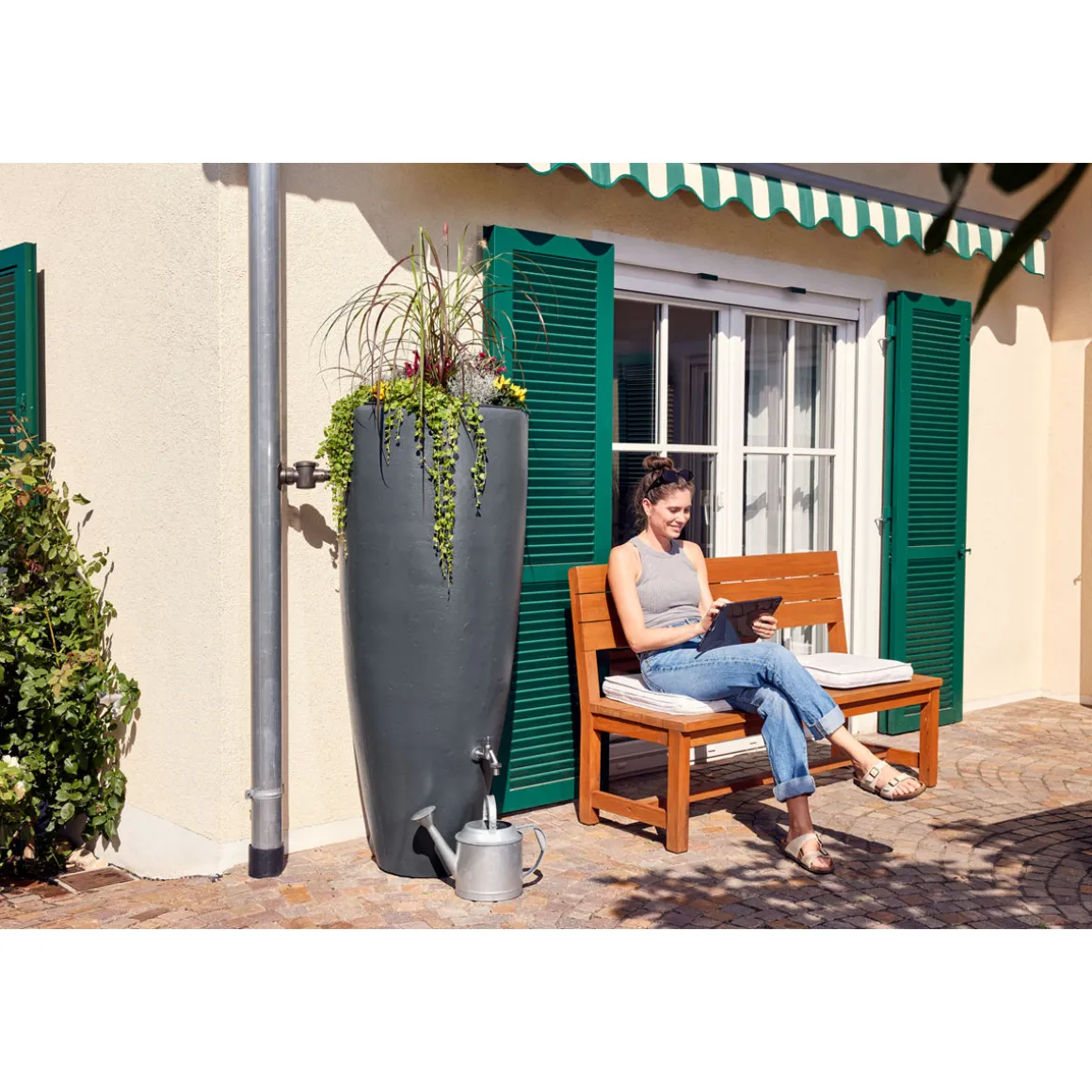Garantia Wasserbehälter 2in1 300 Liter graphite grey inkl. Pflanzschale