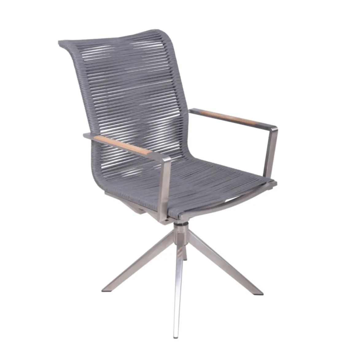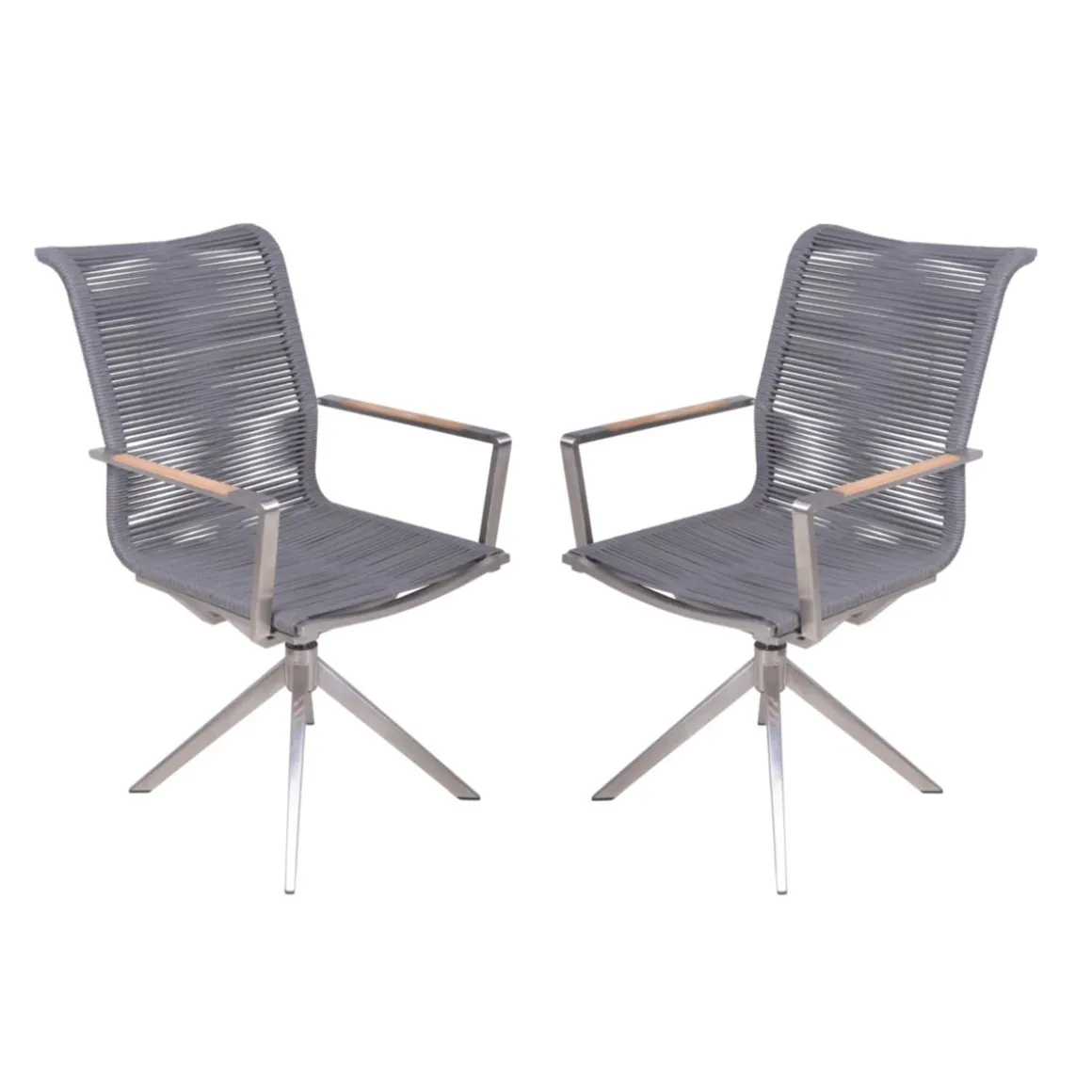 Garden Pleasure Drehstuhl RUBIERA, 2er Set Edelstahl, Olefin Seil, Teak FSC 100%