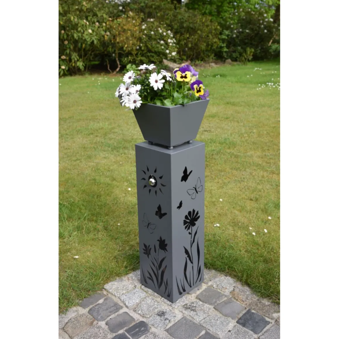 Garden Pleasure Pflanzsäule mit Blumenmotiv NOVELLA Eisen, grau,