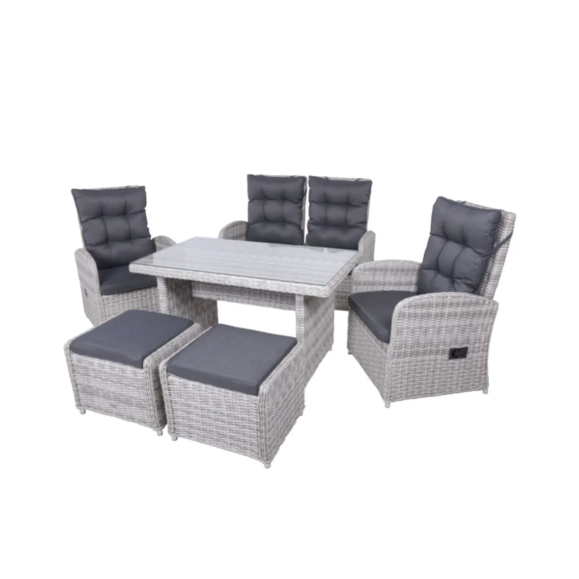 | Extras: | Alle Rückenlehnen sind verstellbar, inkl. 2× Kissen und 4× Auflagen |