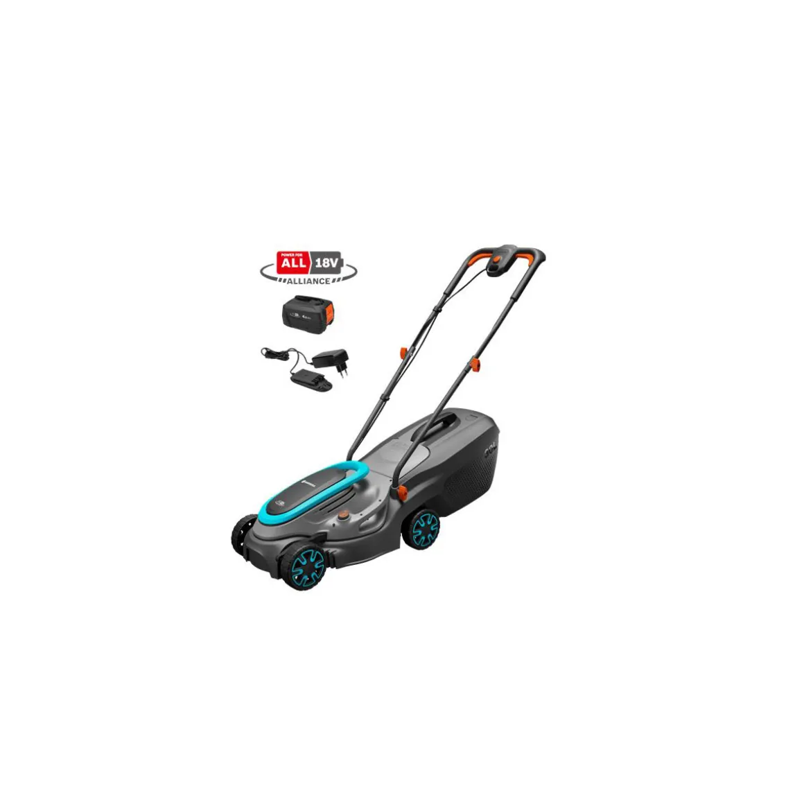 Das zuverlässige Akku-Rasenmäher PowerMax 32/18V P4A Ready-To-Use Set von GARDENA ist die Allround-Lösung für Deinen Rasen. Der Rasenmäher bietet Dir eine kraftvolle Performance und ist ideal für Rasenflächen bis 200 m² geeignet. Durch das doppelt gehärtete DuraEdge-Messer mit Präzisionsschliff und 32 cm Breite wird Dein Rasen perfekt mit einem gleichmäßigen Schnittergebnis gemäht. Aufgrund der geführten Luftzirkulation und der optimalen Position des 30 Liter großen Grasfangkorbes sammelst Du das Schnittgut gekonnt auf, sodass sich der Korb vollständig füllt. Das reduziert die Häufigkeit des Entleerens und spart Dir vor allem Zeit. Durch die Füllstandsanzeige weißt Du zudem immer, wann der Korb geleert werden muss. Der PowerMax 32/18V verfügt über einen leistungsstarken und bürstenlosen Motor. Selbst nach häufigem Gebrauch wird die Leistung nicht verringert und er behält seine hohe Effizienz für einen langen Zeitraum aufrecht. Der ErgoTec-Griff verleiht Dir eine ergonomische und damit komfortable Handhabung. So ist das Mähen mit dem Akku-Rasenmäher auch über längere Zeiträume nicht zuletzt wegen seines geringen Gewichtes bequem und mühelos. Für noch mehr Komfort passt Du den Holm in bis zu drei Höhen Deiner Körpergröße an. Wie viel Energie noch im Akku des PowerMax steckt, siehst Du jederzeit und gut sichtbar in der am Griff integrierten LED-Ladestandanzeige. Hier kannst Du zusätzlich per Knopfdruck den Eco-Modus aktivieren. Der Eco-Modus spart Strom und verlängert die Laufzeit des POWER FOR ALL-Akkus. Ob etwas länger oder richtig kurz: Mit Hilfe des gut erreichbaren QuickFit-Plus-Knopfes legst Du vor dem Start intuitiv mit nur einer Hand die Schnitthöhe des Mähers zentral am Gehäuse individuell zwischen 35 und 65 mm fest. Dank der seitlichen Rasenkämme kürzt Du jeden Grashalm an selbst schwer zugänglichen Stellen entlang von Wänden sowie Kanten und erzielst einwandfreie Schnittresultate. Nach dem Rasenschnitt nutzt Du die praktische Klappfunktion des Holmes für eine platzsparende Aufbewahrung des Akku-Rasenmähers. Der GARDENA Akku-Rasenmäher PowerMax 32/18V P4A wird als Ready-To-Use Set mit Ladegerät und leistungsstarkem 4,0 Ah 18V POWER FOR ALL-Akku geliefert. Die POWER FOR ALL ALLIANCE ist eine der größten markenübergreifenden Akku-Allianzen führender Hersteller. Ihre Akkus können in vielen Produkten führender Hersteller eingesetzt werden. Du brauchst also nicht für jedes einen extra Akku zu kaufen und sparst Geld! Akku-Power für Deine Ideen von GARDENA. DAS Akku-System für all Deine Aufgaben im Garten.