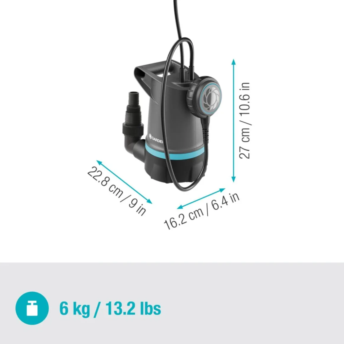 - Lieferumfang: 1x GARDENA Klarwasser-Tauchpumpe 20000 BASIC, 1x Anschlusskabel 10 m H05 RN-F