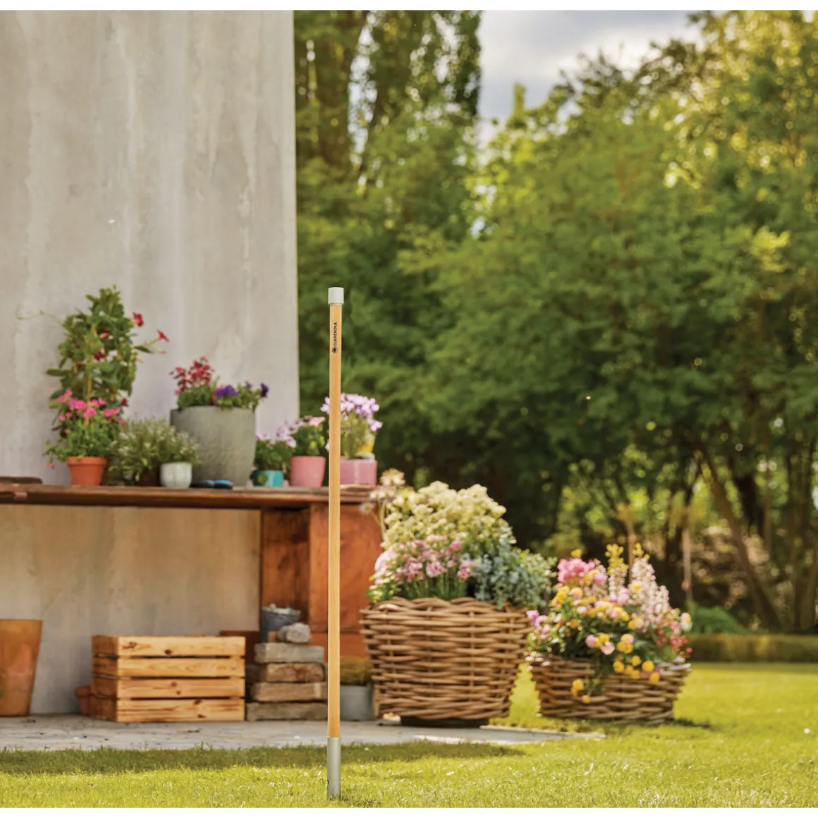 Mit dem Gardena Stiel ClickUp wird die Gartenarbeit zum Kinderspiel. Der stabile Stiel aus Lärchenholz ist mit einem Speerende aus Edelstahl versehen und lässt sich dank des One-Click-Mechanismus kinderleicht mit allen ClickUp! Dekoaufsätzen verbinden.
