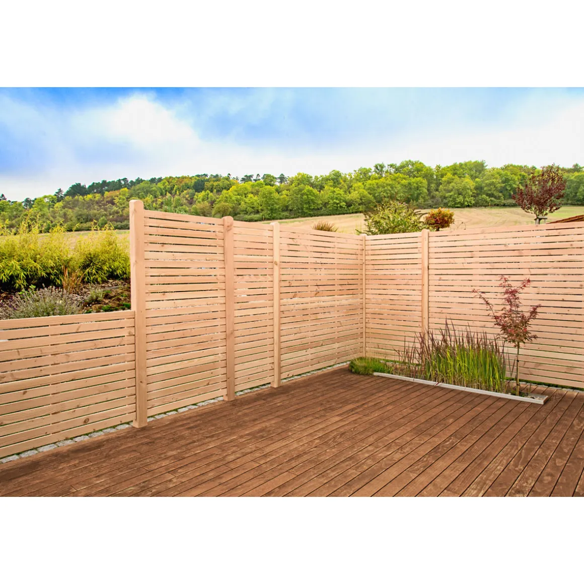 - Mit einer Lamellenstärke von 62 mm bietet der Zaun Stabilität selbst bei windigem Wetter.