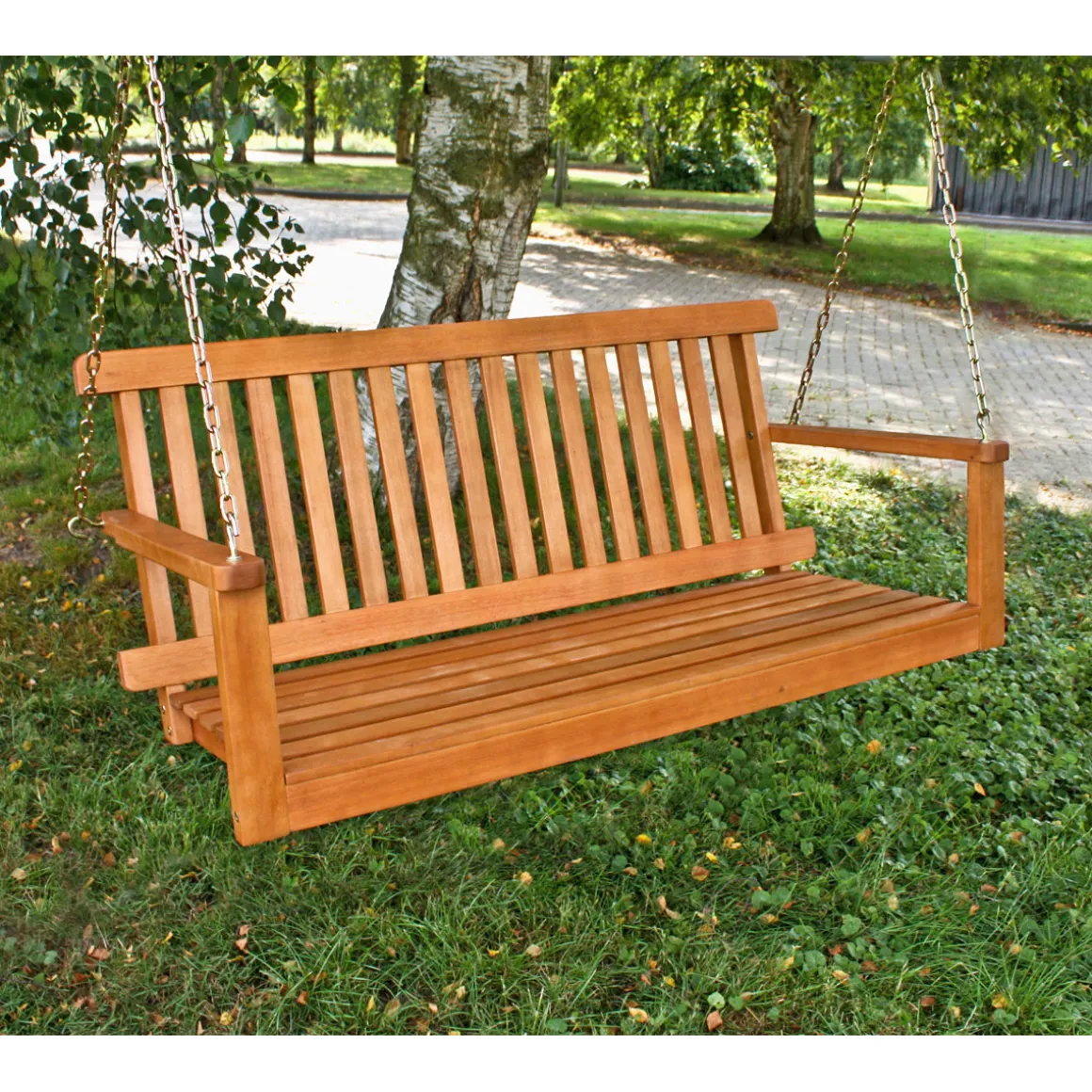 Träumen Sie von einem Ort, an dem Sie die Seele baumeln lassen können? Die Hängebank Columbia ist genau das Richtige für Sie! Mit ihrem edlen Eukalyptusholz und der witterungsbeständigen Oberfläche bringt sie nicht nur Stil, sondern auch Langlebigkeit in Ihren Außenbereich. Ob allein oder zu zweit – diese Gartenbank lädt zum Entspannen ein und wird schnell zum Highlight Ihres Gartens. Lassen Sie sich von der natürlichen Schönheit des Materials verzaubern und genießen Sie unvergessliche Momente im Grünen.