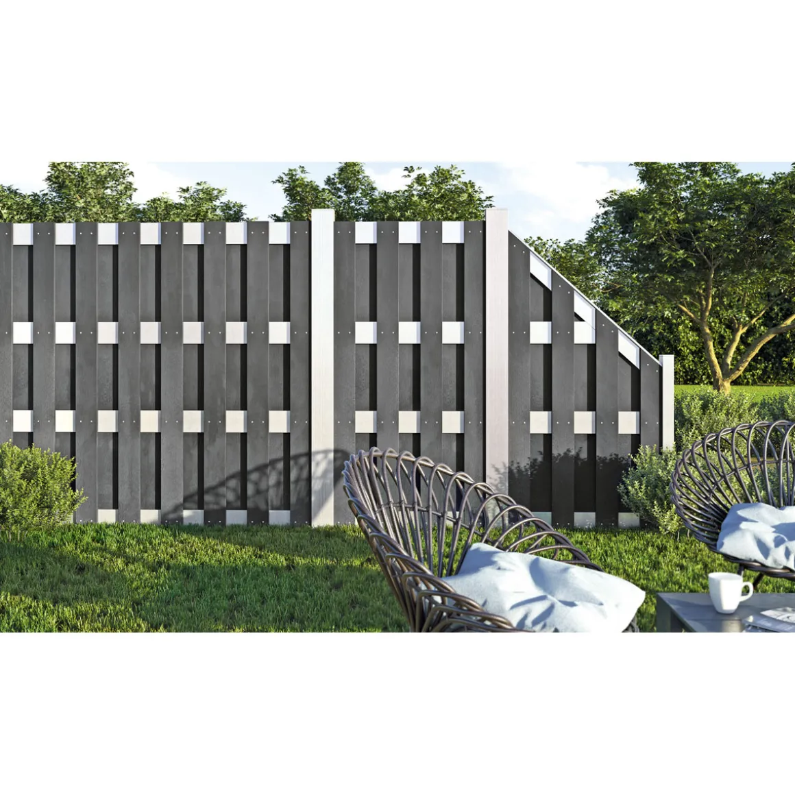 Hartmann Zaun Grundelement WPC/Alu 180×180 cm anthrazit/silber für modernen Sichtschutz