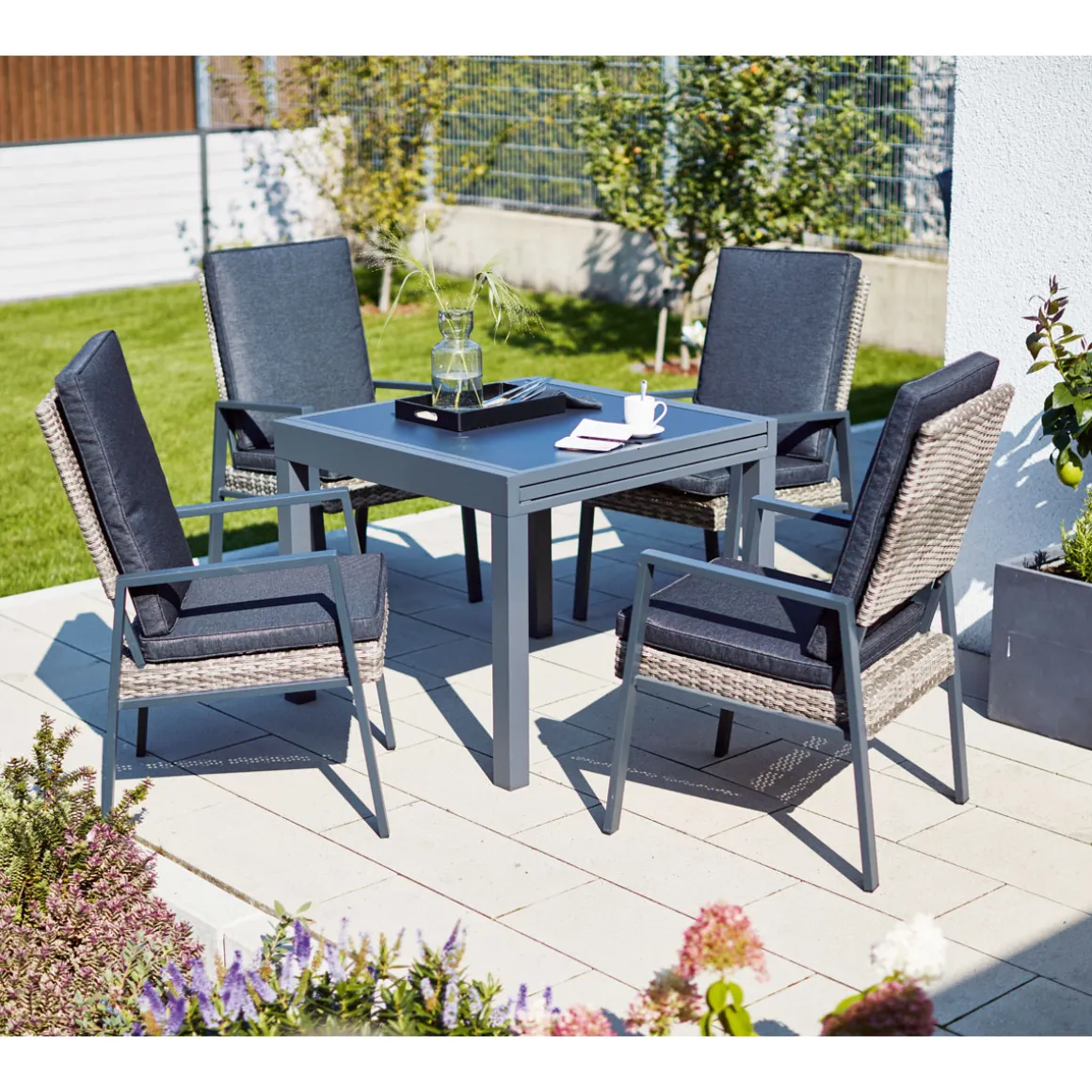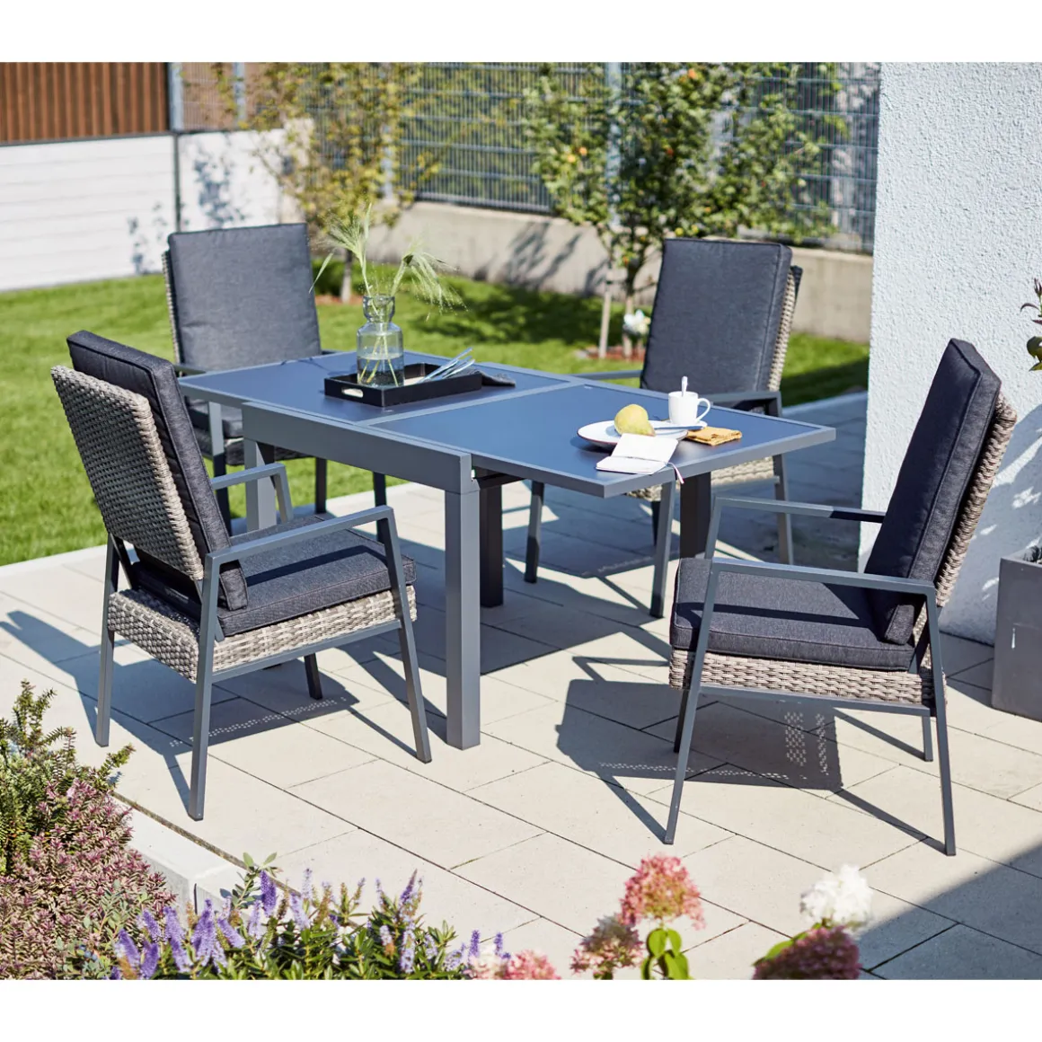 Genießen Sie den Sommer mit dem Haveson Ausziehtisch Atlanta in stilvollem Grau. Mit Platz für bis zu 6 Personen und einer ausziehbaren Tischplatte ist dieser Gartentisch perfekt für gesellige Abende im Freien.