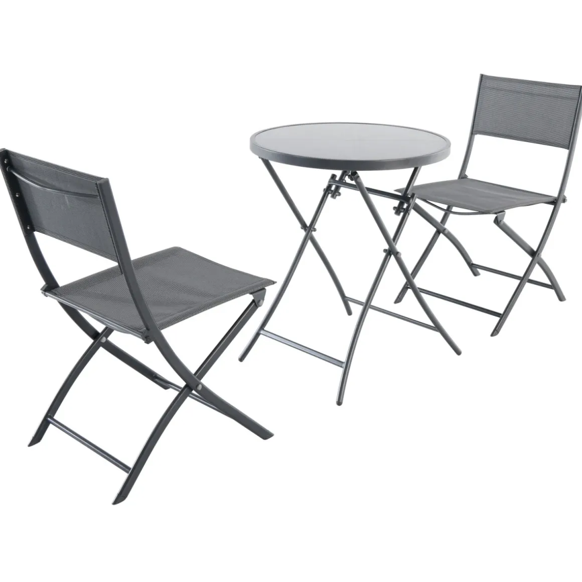 Mit dem Haveson Balkonmöbel-Set Atlanta in Grau holen Sie sich eine moderne und praktische Sitzgelegenheit auf Ihren Balkon. Das Set besteht aus robustem Stahlgestell und einer eleganten Glasplatte am Tisch. Die beiden Klappstühle lassen sich einfach verstauen, wenn sie nicht benötigt werden. Genießen Sie den Sommer im Freien mit diesem stilvollen Möbelset von Havesons Serie ‚Atlanta‘.