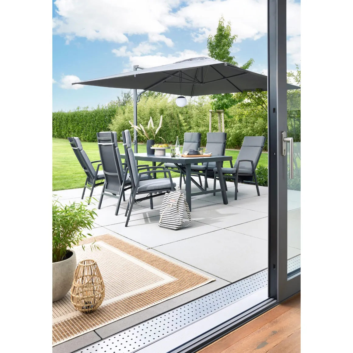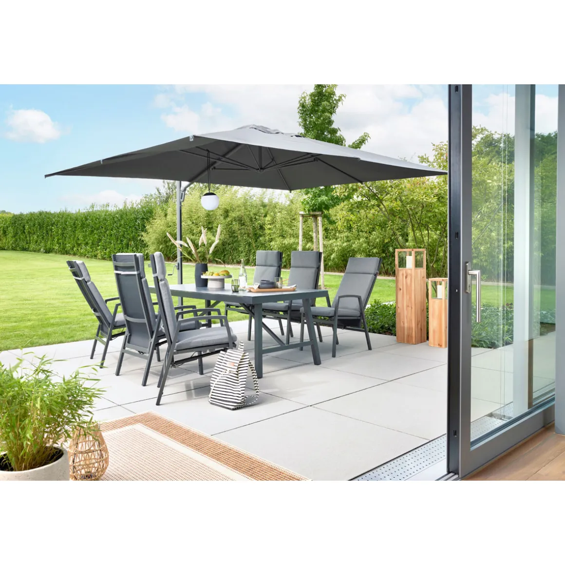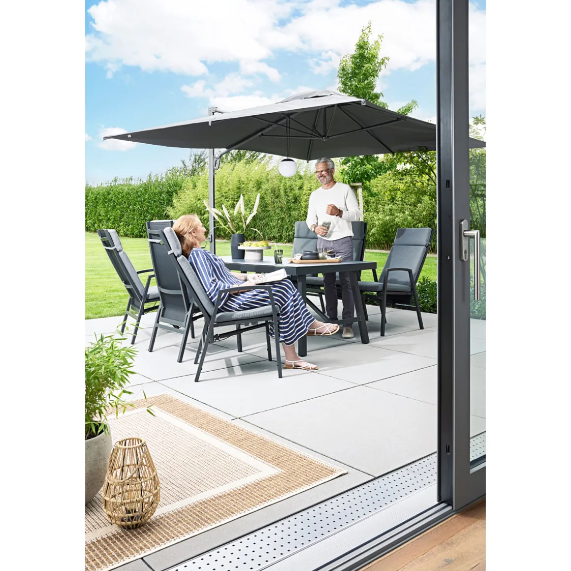 - Pulverbeschichtetes Aluminiumgestell sorgt für Stabilität und Langlebigkeit bei jedem Wetter.