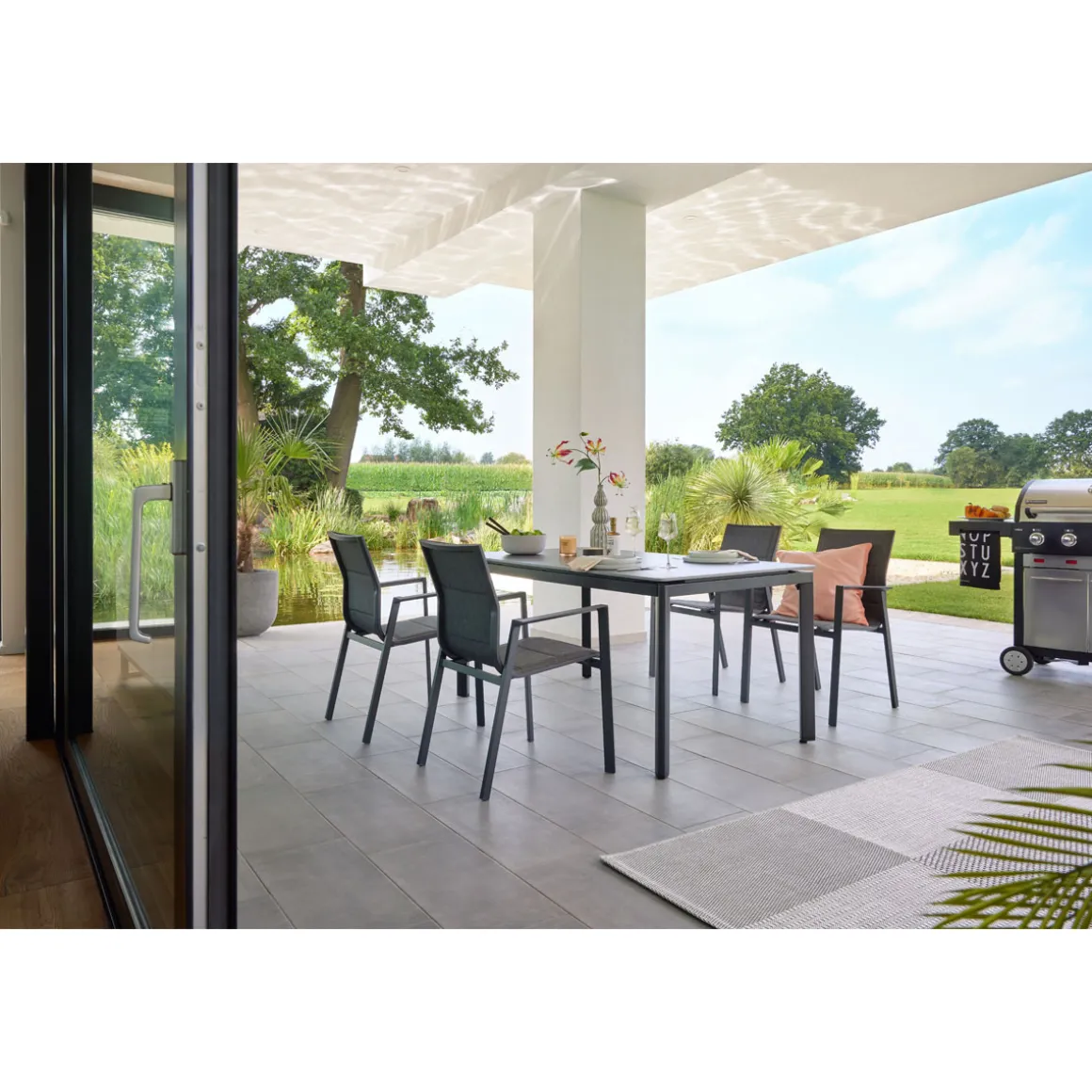 - Hochwertige Materialien machen den Tisch pflegeleicht und perfekt geeignet für den Außenbereich
