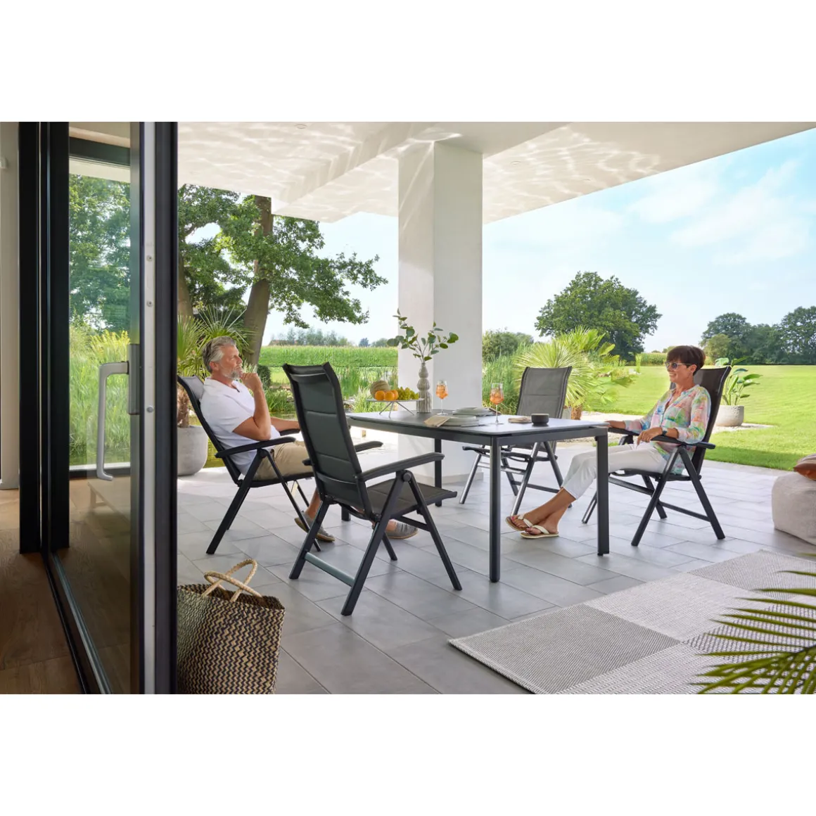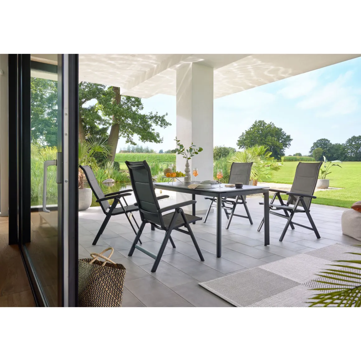 Genießen Sie die Sonne in vollen Zügen mit dem Haveson Klappsessel Corento! Dieser Gartensessel vereint Komfort und Stil auf beeindruckende Weise. Die gepolsterte Sitz- und Rückenfläche aus hochwertigem Textilen sorgt für ein angenehmes Sitzgefühl, während das pulverbeschichtete Aluminiumgestell nicht nur stabil, sondern auch besonders leicht ist. Mit seinem eleganten Design in Grau fügt sich der Sessel harmonisch in jede Umgebung ein – ob auf der Terrasse, dem Balkon oder mitten im Grünen. Dank der verstellbaren Rückenlehne können Sie Ihre Sitzposition individuell anpassen und entspannte Stunden genießen.