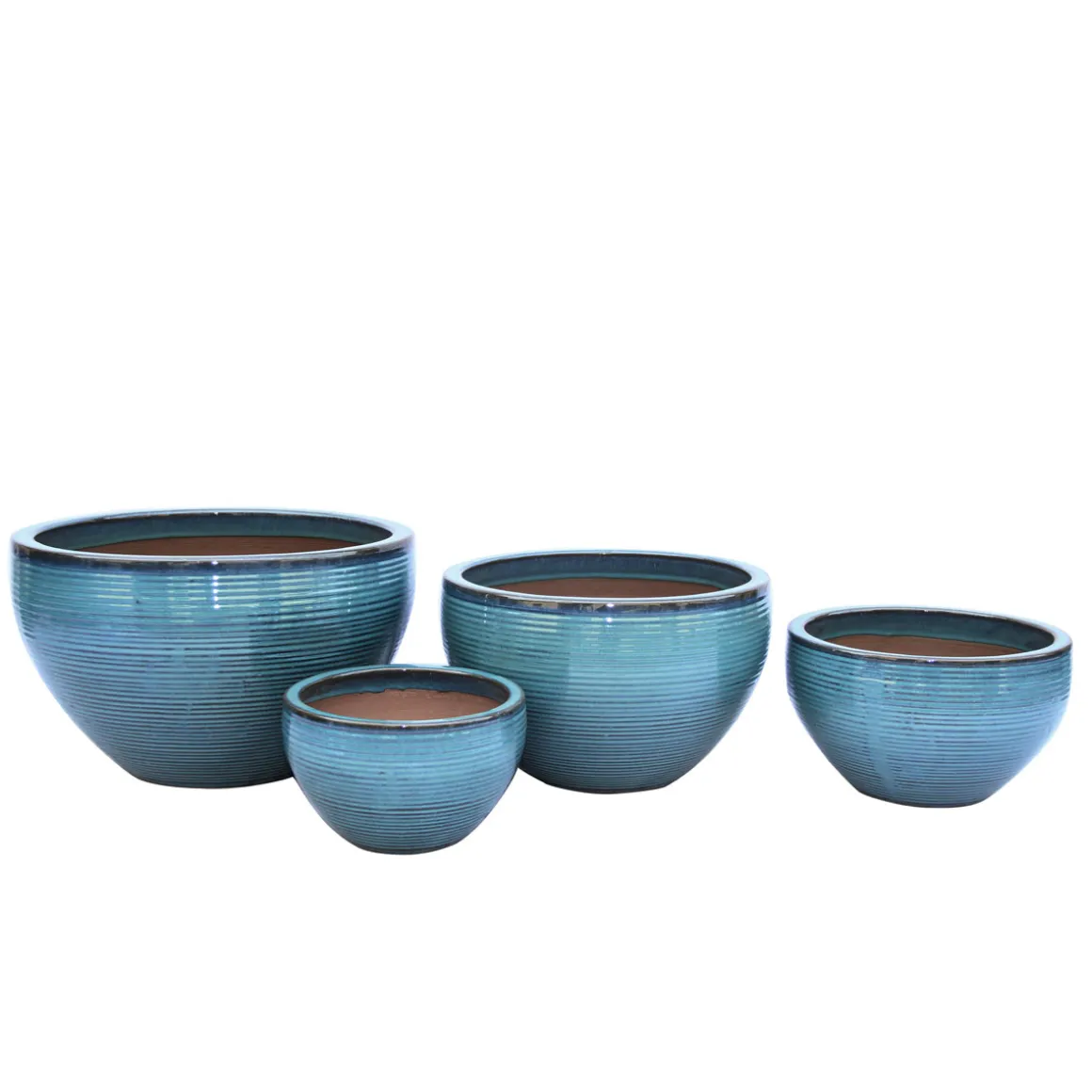 Haveson Pflanzschale Feine Rille türkis glasiert – Eine stilvolle Ergänzung für Ihren Garten