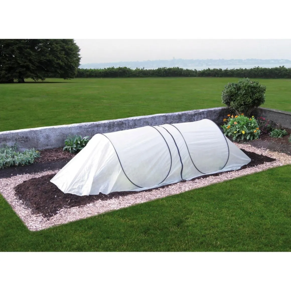 Schützen Sie Ihre Pflanzen vor Kälte und Witterungseinflüssen mit dem luft- und lichtdurchlässigen Kälteschutztunnel/Abdeckschutz aus Vlies. Das Basismodul ist einfach aufzubauen und verfügt über einen Reißverschluss für eine bequeme Handhabung.