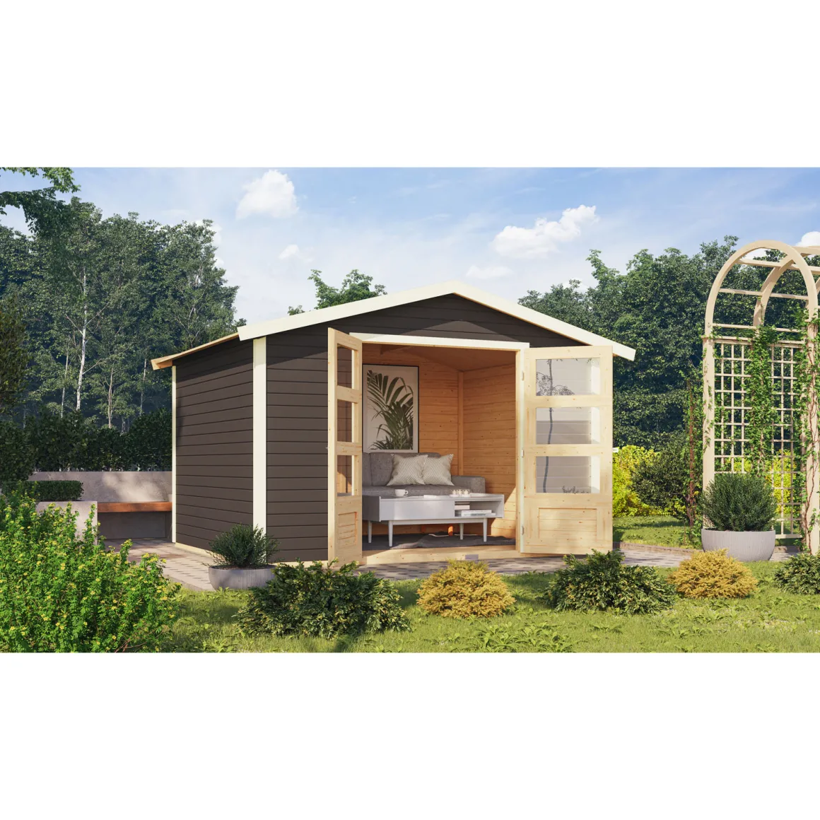 - Gartenhaus aus hochwertiger nordischer Fichte mit wasserabweisender Profilierung