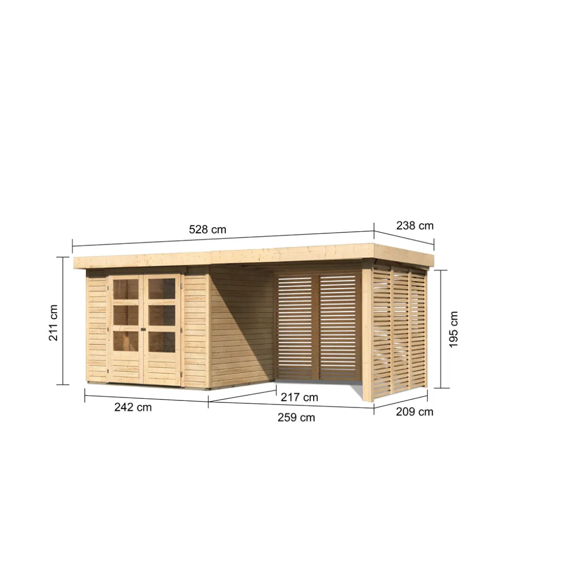 Karibu BBH Askola 3 Set mit Anbaudach naturbelassen